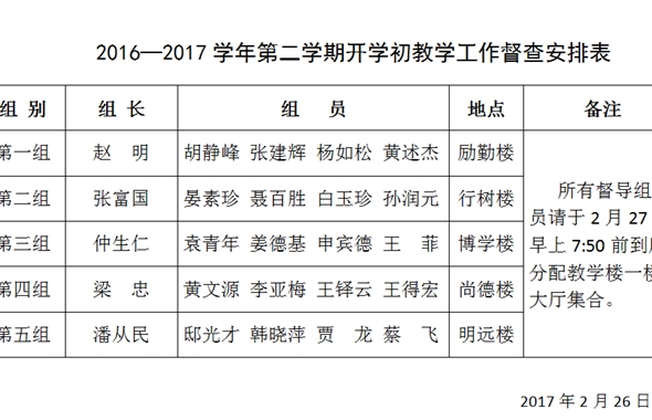 2017-2018學年第二學期督導性聽課安排表(第十五周)