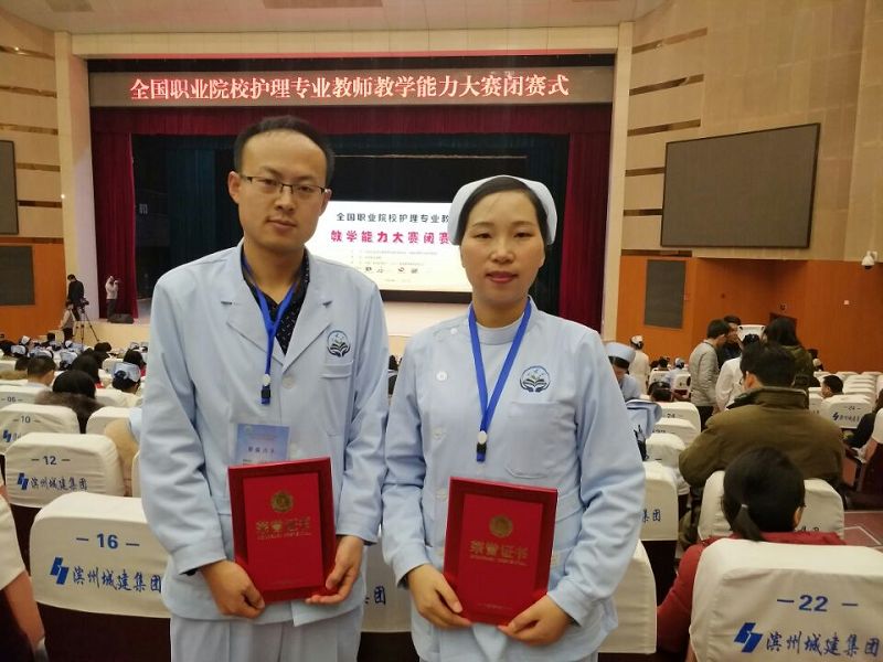護(hù)理專業(yè)是我院優(yōu)質(zhì)校建設(shè)特色專業(yè)之一,為展示新時期我院教師高超的技術(shù)水平和良好的精神風(fēng)貌, 12月15日至17日我院王艷麗、張前兩名教師參加在山東省濱州職業(yè)學(xué)院舉行的首屆全國職業(yè)院校護(hù)理專業(yè)教師教學(xué)能力大賽。經(jīng)過激烈的比拼爭奪,我院代表隊(duì)獲得團(tuán)體三等獎、王艷麗獲個人三等獎、張前獲優(yōu)秀獎。