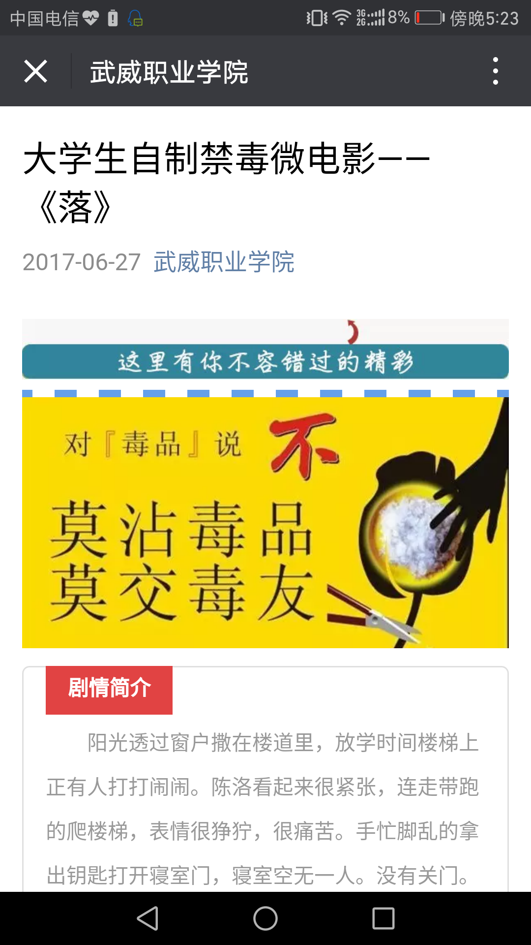 為進(jìn)一步推進(jìn)平安校園建設(shè),不斷推進(jìn)青少年毒品預(yù)防教育“6·27”工程活動的深入開展,增強(qiáng)師生的禁毒意識,武威職業(yè)學(xué)院根據(jù)甘肅省禁毒委員會辦公室、甘肅省教育廳《關(guān)于做好2017年秋季開學(xué)在校學(xué)生毒品預(yù)防教育工作的通知》要求,在全院范圍內(nèi)開展了禁毒宣傳教育“五個一”活動。
