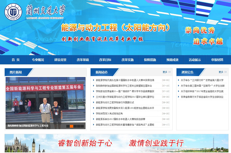 2017年度學(xué)院以平臺(tái)建設(shè)為抓手,積極開展專業(yè)建設(shè),取得重大進(jìn)展,以“深化內(nèi)涵發(fā)展、服務(wù)地方經(jīng)濟(jì)”為目標(biāo),積極開展校企合作,取得明顯實(shí)效。其中學(xué)院申報(bào)的能源與動(dòng)力工程專業(yè)獲批甘肅省創(chuàng)新創(chuàng)業(yè)試點(diǎn)改革專業(yè);與天合光能有限公司達(dá)成協(xié)議由其出資的“思源陽光”基金會(huì)每年提供5萬元的創(chuàng)新創(chuàng)業(yè)獎(jiǎng)學(xué)金;與北京海瑞克有限公司達(dá)成協(xié)議為新能源科學(xué)與工程專業(yè)的優(yōu)秀學(xué)生提供獎(jiǎng)學(xué)金;與北京群菱能源科技有限公司達(dá)成協(xié)議冠名贊助學(xué)院新能源開發(fā)與利用知識(shí)競(jìng)賽;與蘭州海紅技術(shù)股份有限公司、甘肅建投武威新能源有限公司、中節(jié)能涼州發(fā)電公司等企業(yè)簽訂協(xié)議成立校外教學(xué)實(shí)習(xí)基地。