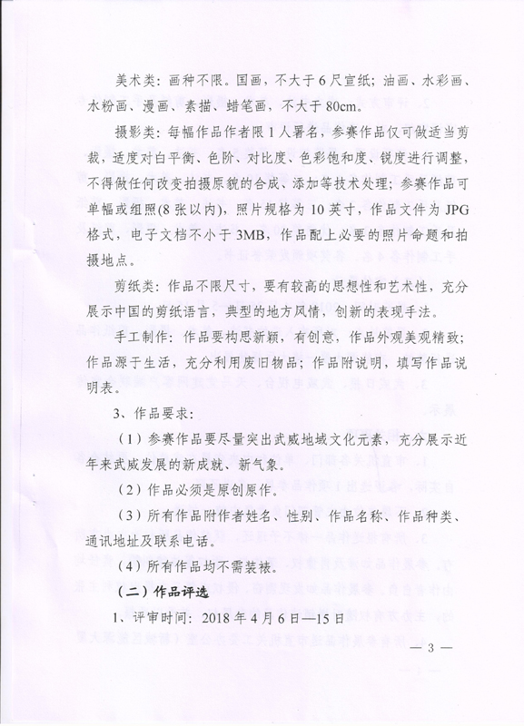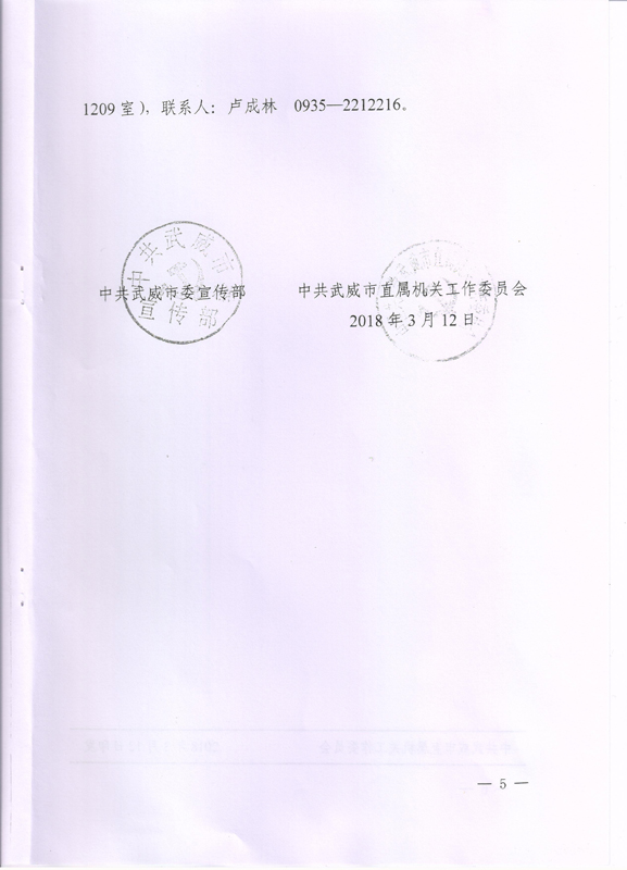 現(xiàn)將中共武威市委宣傳部、中共武威市直屬機(jī)關(guān)工作委員會(huì)《關(guān)于舉辦市直機(jī)關(guān)“不忘初心? 牢記使命”藝術(shù)作品展的通知》(武市直發(fā)〔2018〕9號(hào))轉(zhuǎn)發(fā)你們,請各部門、單位根據(jù)要求認(rèn)真組織,積極參與。將參賽作品于4月2日前報(bào)宣傳統(tǒng)戰(zhàn)部辦公室,宣傳統(tǒng)戰(zhàn)部對(duì)報(bào)送作品匯總后統(tǒng)一報(bào)送市直屬機(jī)關(guān)工委。
