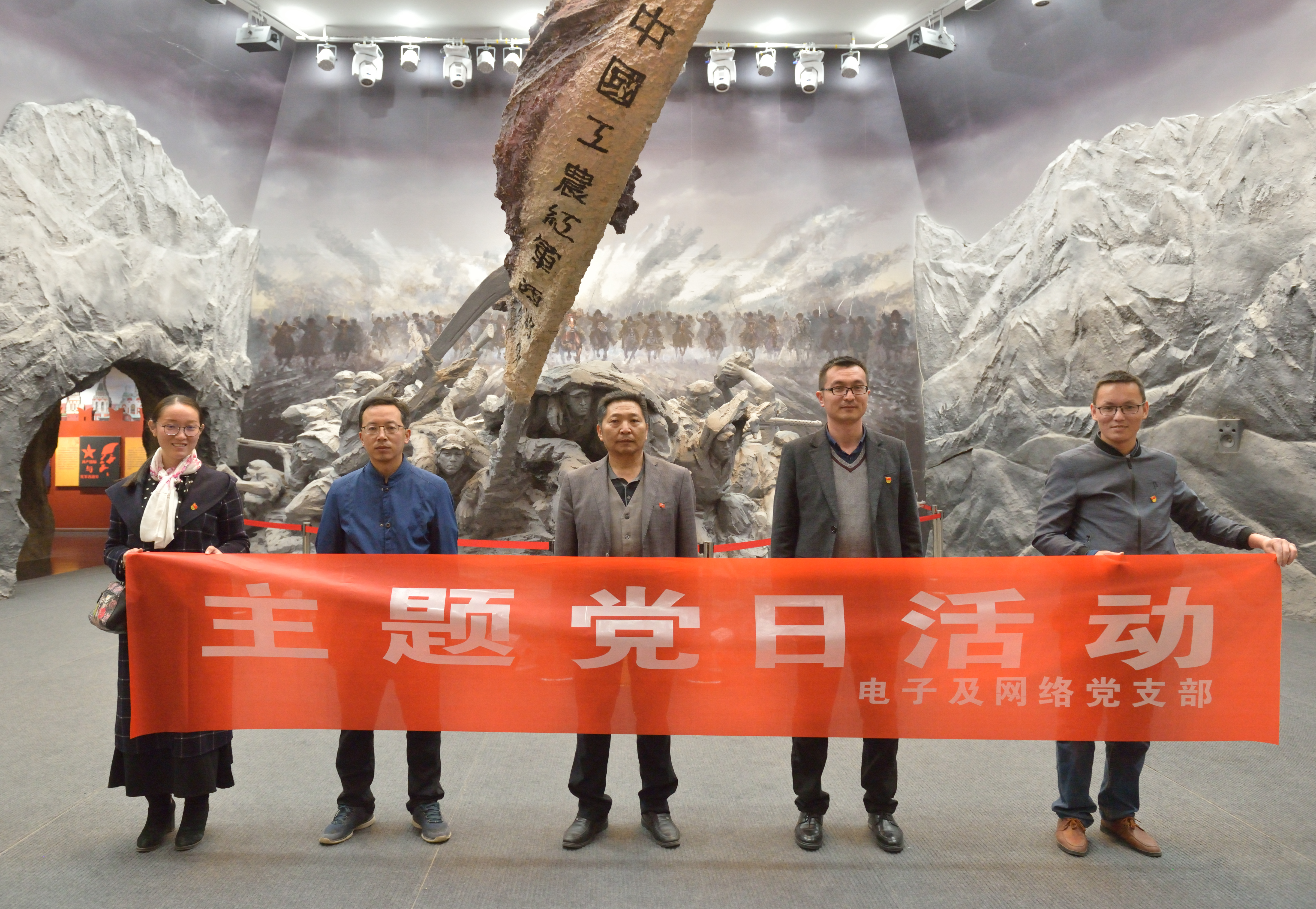 ? ? 4月4日下午,清明節(jié)來臨之際,為讓廣大黨員干部緬懷革命先烈,聆聽英雄事跡,重溫入黨誓詞,身臨其境的接受一次愛國主義教育,計算機應用黨支部、電子及網絡黨支部組織全體黨員赴古浪戰(zhàn)役紀念館,深入開展了紅色教育主題活動。在鮮紅的黨旗前,黨員同志莊嚴舉起右拳,再一次重溫那段刻骨銘心的入黨誓言。