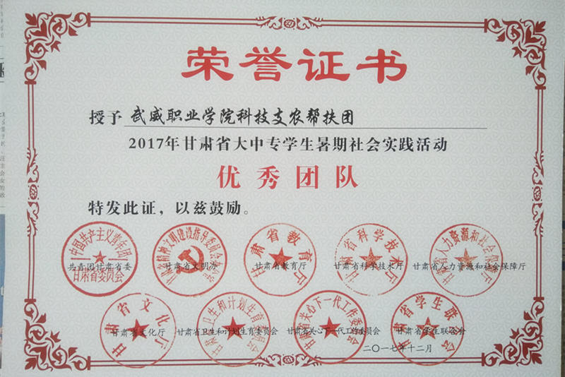 活動結(jié)束后,根據(jù)《關(guān)于開展2017年甘肅省大中專學(xué)生志愿者暑期文化科技衛(wèi)生“三下鄉(xiāng)”社會實踐活動的通知》要求,我系組織的科技支農(nóng)幫扶團集體和個人被評為甘肅省暑期“三下鄉(xiāng)”社會實踐活動先進集體和個人。