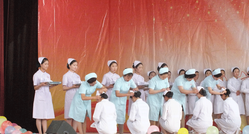 為了繼承和弘揚(yáng)南丁格爾精神,展示護(hù)理系師生良好精神風(fēng)貌和職業(yè)風(fēng)范,5.11日下午學(xué)院在大禮堂舉辦了“5.12”國際護(hù)士節(jié)慶祝活動,學(xué)院黨委副書記趙明、副院長翟存祥以及宣傳統(tǒng)戰(zhàn)部、學(xué)生工作處、教務(wù)處、院團(tuán)委、藥學(xué)系、醫(yī)技系領(lǐng)導(dǎo)及護(hù)理系全體師生1200余人參與了本次活動。