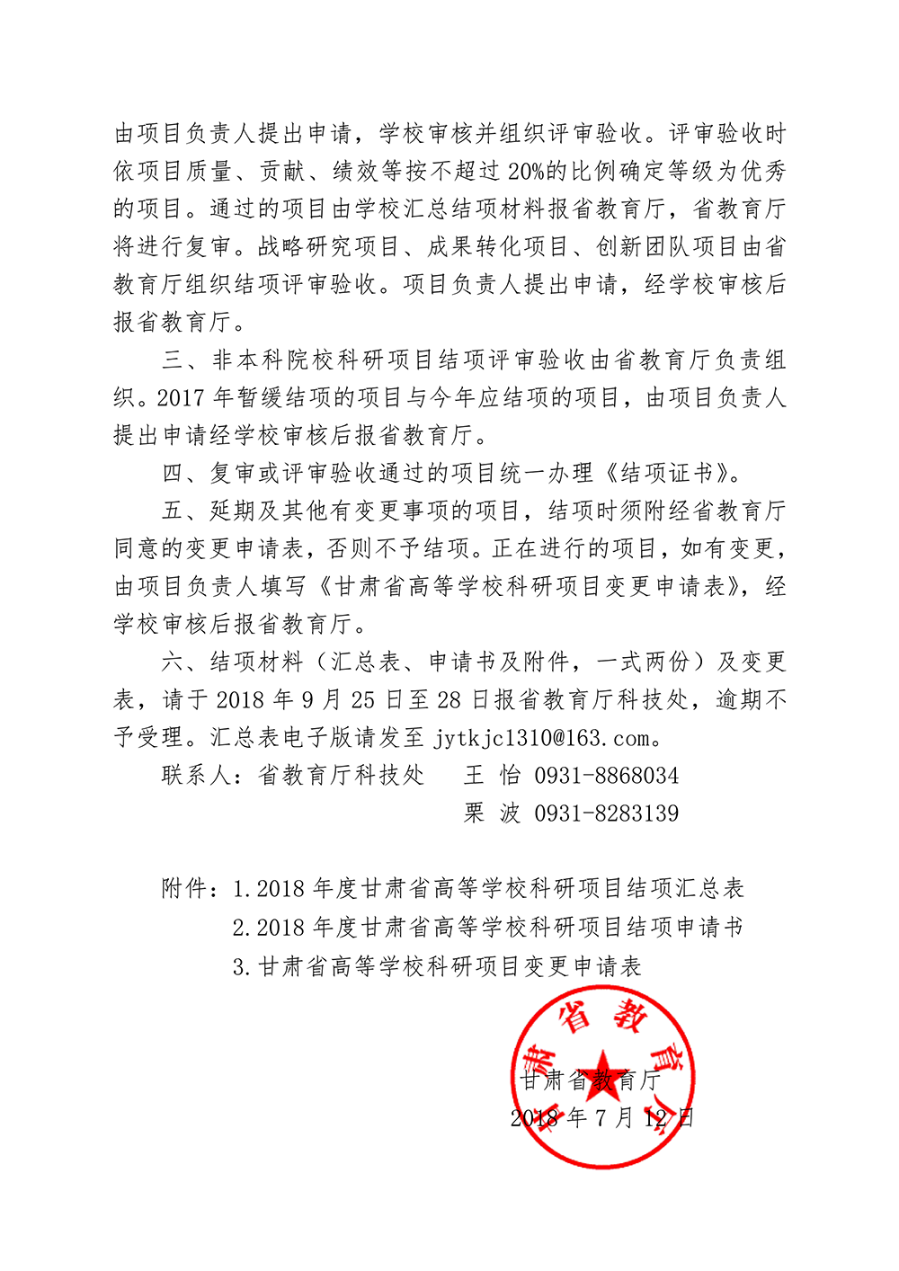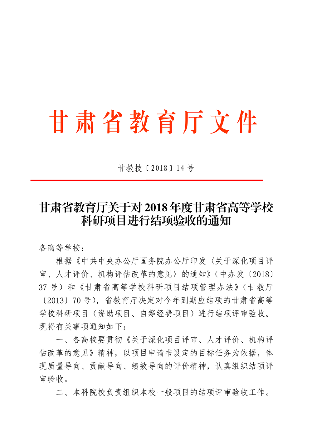 甘肅省教育廳關(guān)于對2018年度甘肅省高等學??蒲许椖窟M行結(jié)項的通知(附件).doc