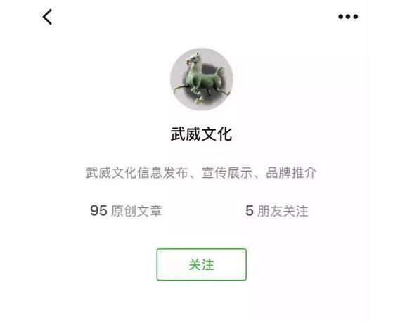 2.點(diǎn)擊“關(guān)注”按鈕,關(guān)注“武威文化”公眾號。