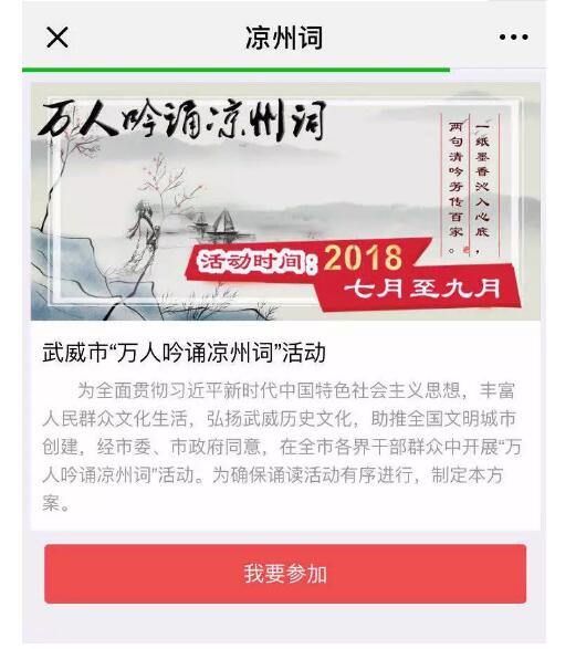 參與武威市“萬人吟誦涼州詞”網(wǎng)絡(luò)誦讀活動主要有以下三個步驟: