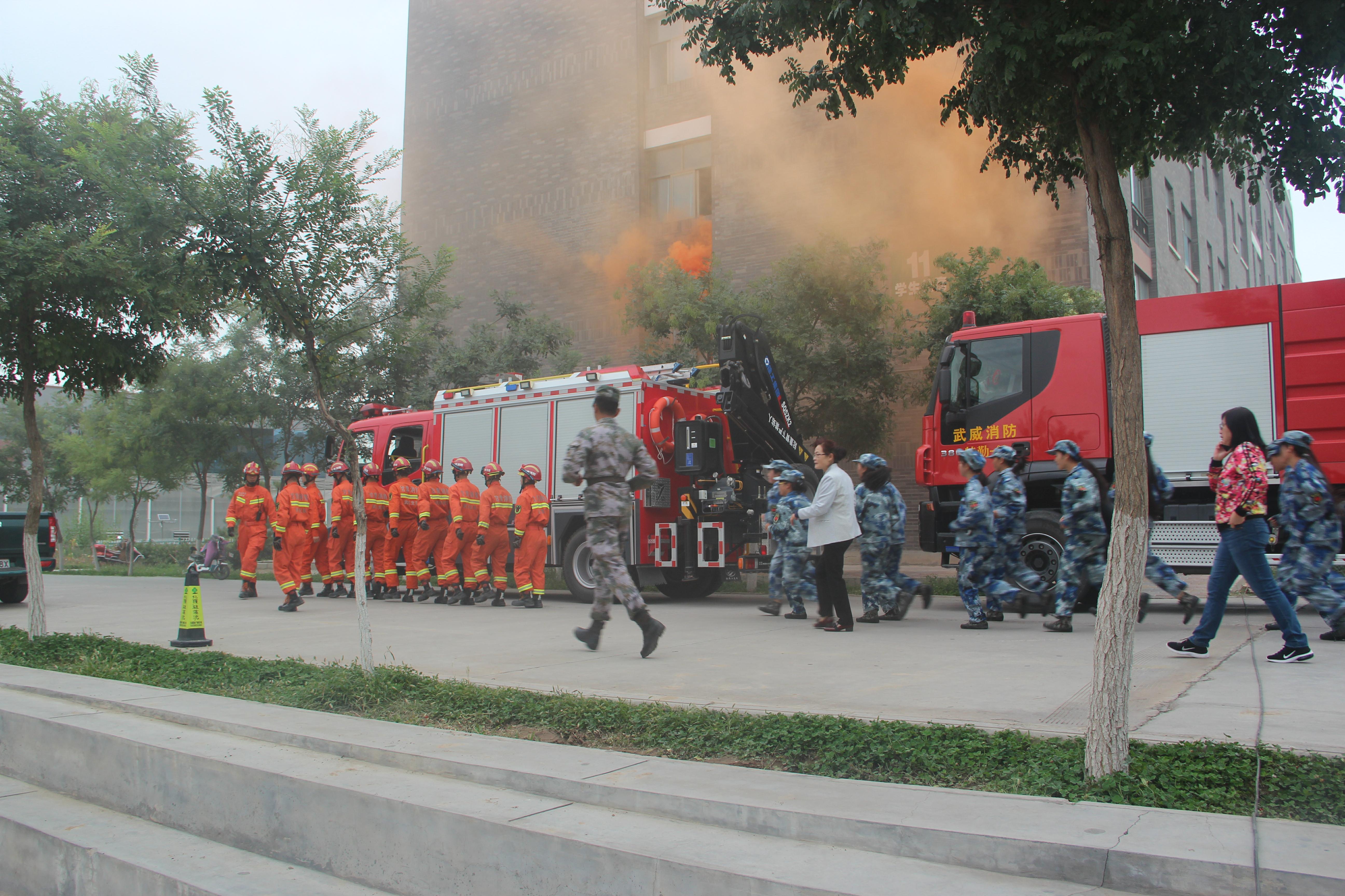 為進(jìn)一步加強(qiáng)校園安全工作,增強(qiáng)師生的消防安全意識(shí),提高師生抵御火災(zāi)和應(yīng)對(duì)緊急突發(fā)事件的能力,9月13日上午,學(xué)院聯(lián)合武威市公安消防支隊(duì)舉行了2018年秋季消防應(yīng)急疏散演練。學(xué)院副院長(zhǎng)王永緒及相關(guān)部門、單位負(fù)責(zé)同志現(xiàn)場(chǎng)觀摩,約4000名2018級(jí)新生、學(xué)生管理工作人員、軍訓(xùn)教官、食堂從業(yè)人員參加了演練?。