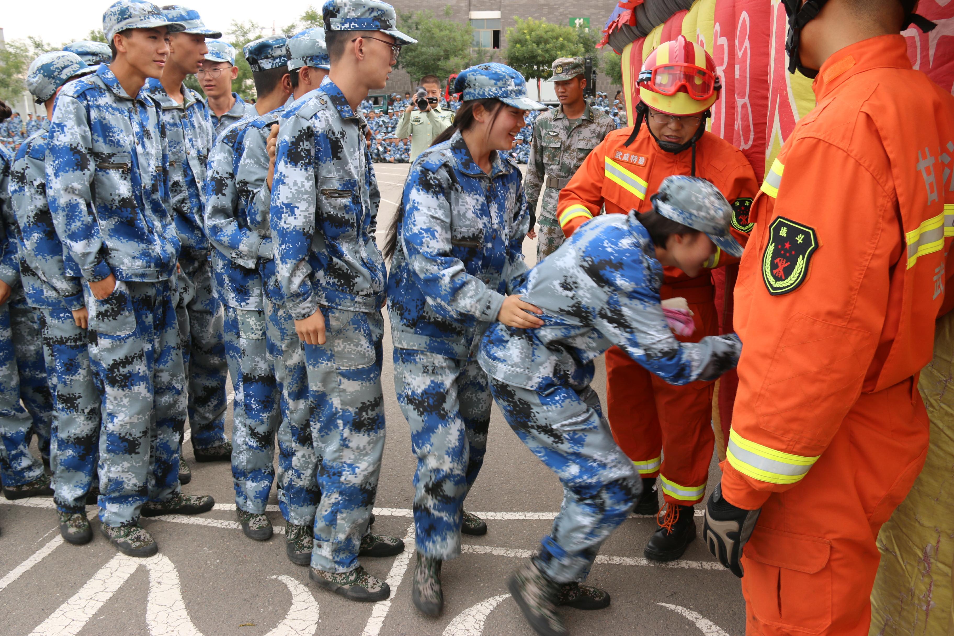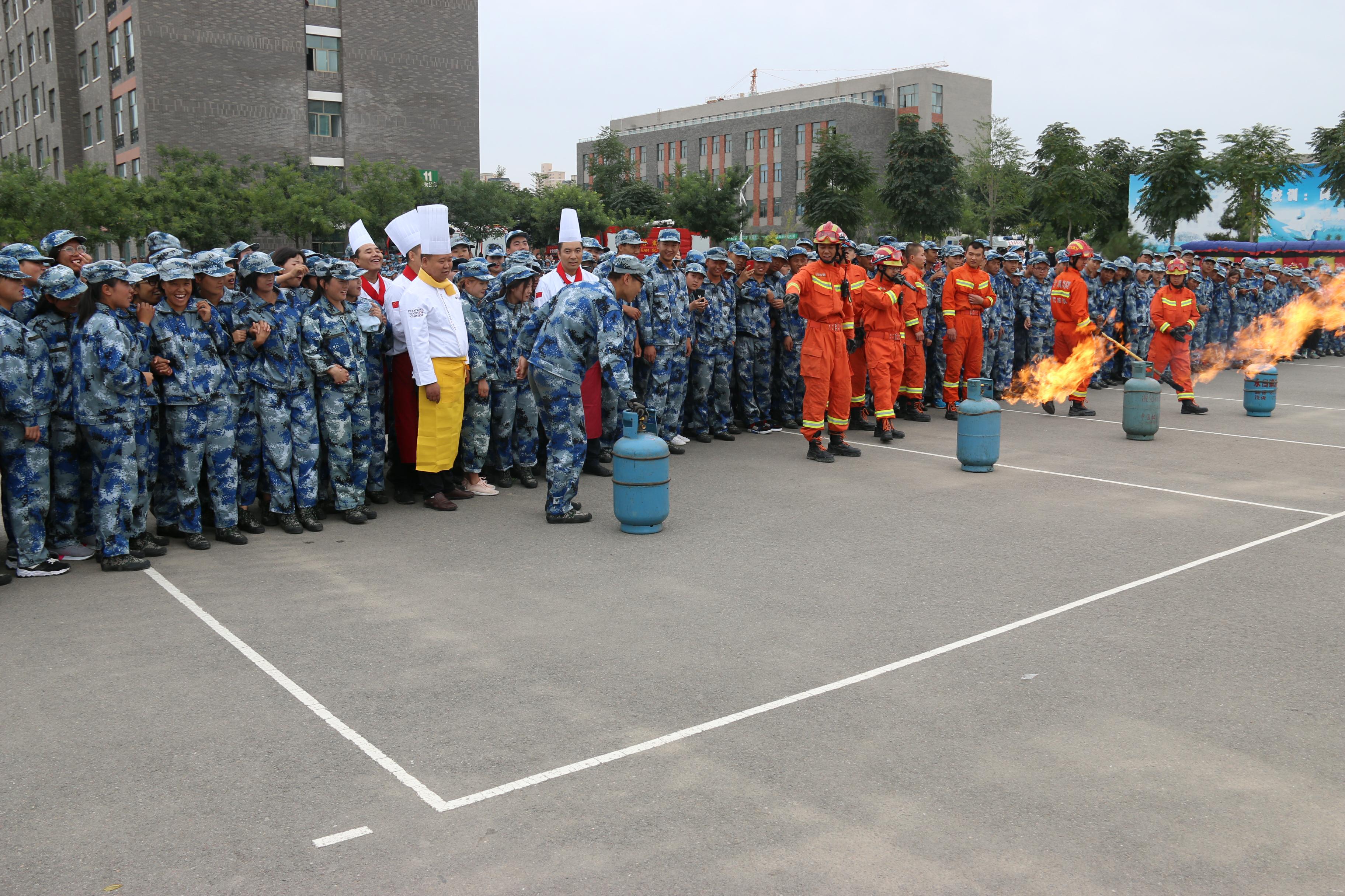 隨后,所有參演學(xué)生整隊(duì)到操場(chǎng)參加了滅火演練。在消防官兵的講解和和示范下,同學(xué)們體驗(yàn)了處置著火液化氣瓶、干粉滅火器滅火、穿消防救生衣、通過模擬煙室等操作。