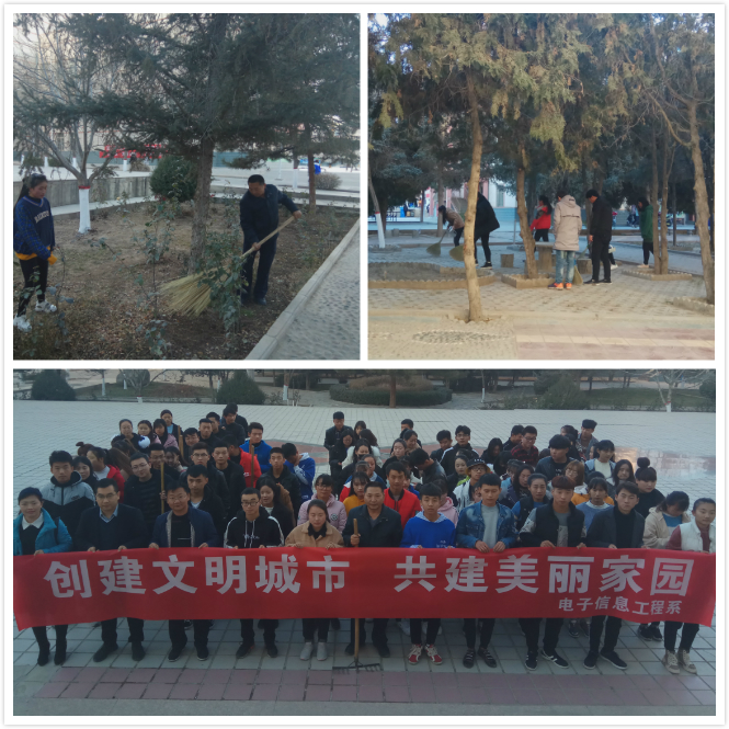 11月22日下午,電子信息工程系黨總支組織黨員教師、入黨積極分子和2018級(jí)學(xué)生入黨申請(qǐng)人開展了環(huán)境衛(wèi)生治理工作,清理校園衛(wèi)生死角,用實(shí)際行動(dòng)助推武威市文明城市創(chuàng)建和全省文明校園創(chuàng)建。