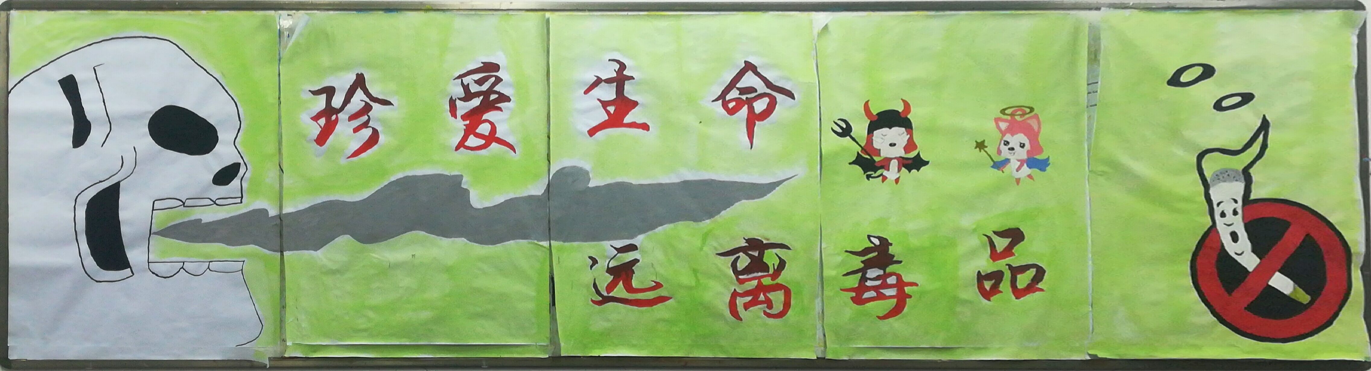 首先、各班團(tuán)支書組織全班同學(xué)開展了“真愛生命,遠(yuǎn)離毒品”的主題班會,通過相關(guān)事例為同學(xué)們講述了毒品的各種危害,然后在各班進(jìn)行了有關(guān)毒品的知識普及,主要從毒品的來源、可能接觸到的途徑以及毒品吸食后的危害等各個方面入手做講解,并通過播放禁毒視頻,使同學(xué)們更加深刻地感受到毒品對人類的危害。最后,各班做了以“珍愛生命,遠(yuǎn)離毒品”為主題的黑板報。從板報當(dāng)中可以看出,同學(xué)們通過本次活動深刻的認(rèn)識到了毒品的危害性,學(xué)會了如何拒絕毒品的誘惑,在一定程度上提高了他們的自我防護(hù)意識,真正地給同學(xué)們起到了警示的作用。