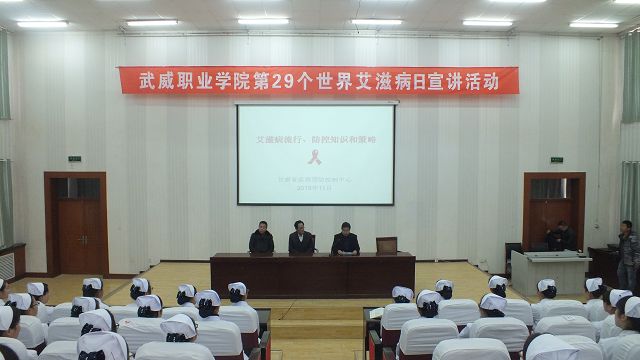 12月1日被世界衛(wèi)生組織確立為“世界艾滋病日”。在第29個(gè)“世界艾滋病日”來臨之際,學(xué)院聯(lián)合武威市衛(wèi)計(jì)委、武威市疾控中心等多家單位,舉辦了主題為“攜手抗艾、重在預(yù)防”的系列宣傳活動(dòng),通過艾滋病知識(shí)講座、主題演講比賽、萬人簽名儀式等活動(dòng),宣傳普及了艾滋病預(yù)防知識(shí),提高了學(xué)院師生對(duì)艾滋病防治工作的認(rèn)識(shí),為營造關(guān)心關(guān)愛艾滋病病人和感染者以及防治艾滋病創(chuàng)造了良好的社會(huì)氛圍。