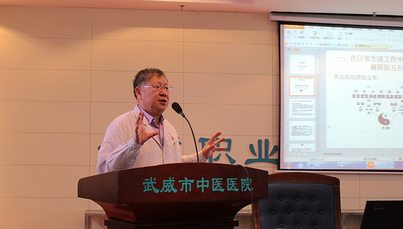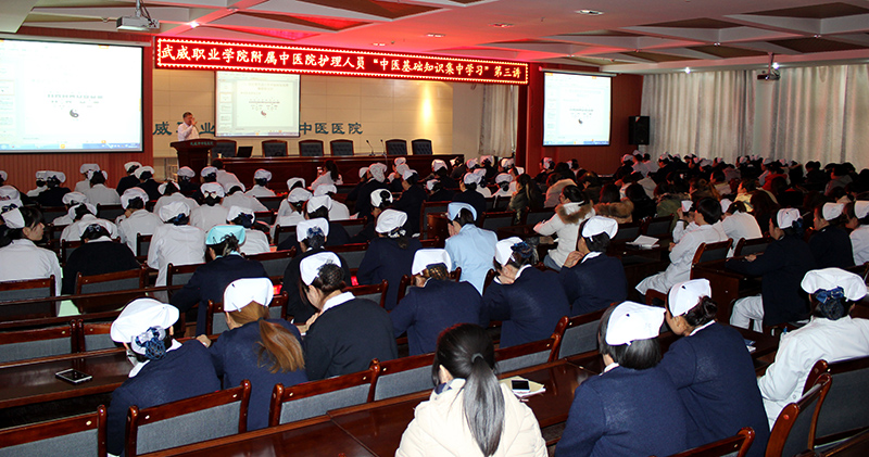 為了提高全院護理人員的中醫(yī)基礎(chǔ)知識水平, 12月12日下午,學院附屬中醫(yī)院護理部在內(nèi)科七樓會議室舉辦護理人員中醫(yī)基礎(chǔ)知識學習會。會議邀請康復中心主任,中醫(yī)針灸主任醫(yī)師張國忠為全院150多名護理工作者作題為《在日常生活中如何應用理解陰陽五行》的中醫(yī)知識講座。
