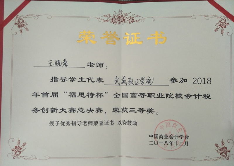 本次比賽得到學(xué)院領(lǐng)導(dǎo)、系領(lǐng)導(dǎo)的高度重視與大力支持。經(jīng)濟(jì)管理系專門成立了輔導(dǎo)小組,嚴(yán)格按照國賽要求進(jìn)行實(shí)戰(zhàn)訓(xùn)練。近年來,經(jīng)濟(jì)管理系參加各級各類會計(jì)技能競賽,適時(shí)修訂會計(jì)人才培養(yǎng)方案,提升學(xué)生動手實(shí)踐能力,培養(yǎng)學(xué)生的職業(yè)核心和專業(yè)崗位能力。做到技能競賽與教學(xué)改革、人才培養(yǎng)相輔相成、相得益彰,使學(xué)生團(tuán)隊(duì)合作能力、創(chuàng)新思維能力、職業(yè)能力不斷加強(qiáng),實(shí)現(xiàn)了“以賽促教、以賽促學(xué)、以賽促改”的預(yù)期效果。經(jīng)濟(jì)管理系將以此為契機(jī),不斷提高人才培養(yǎng)質(zhì)量,為學(xué)院優(yōu)質(zhì)院校建設(shè)增磚添瓦。