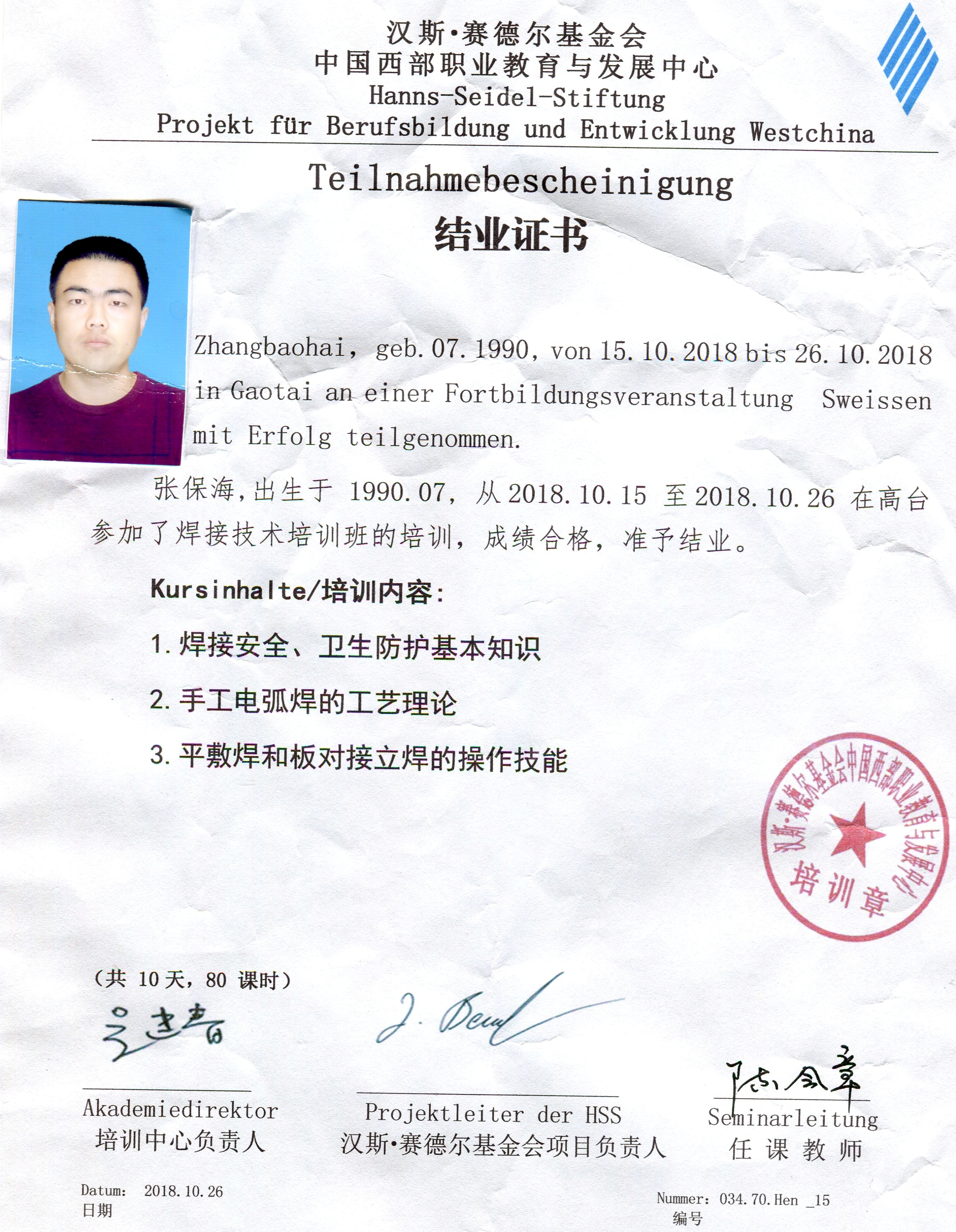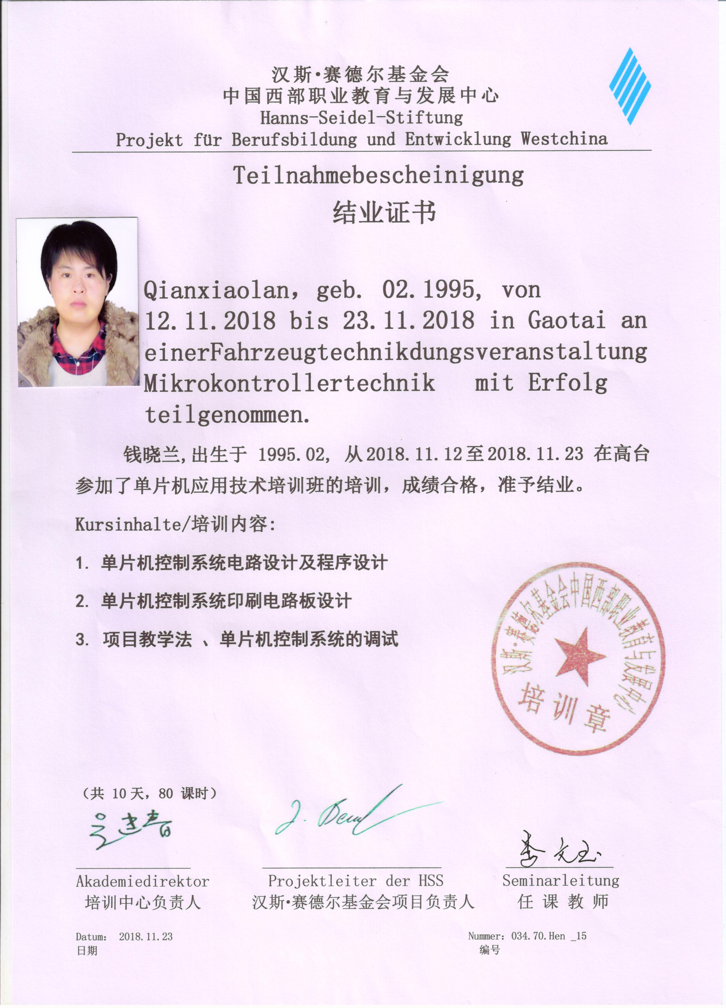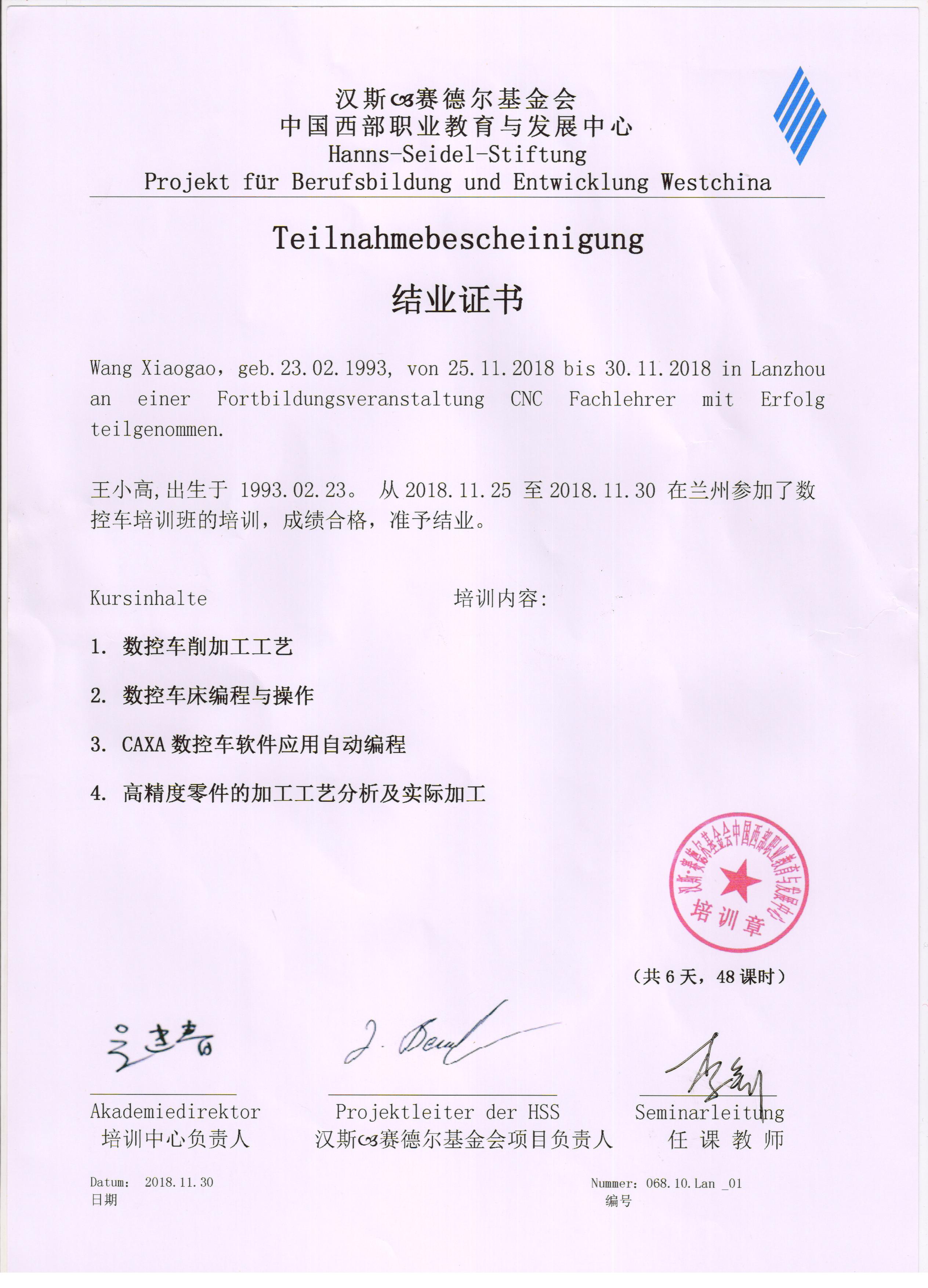 參加德國(guó)漢斯?賽德?tīng)柣饡?huì)職業(yè)院校2018年秋季培訓(xùn)
