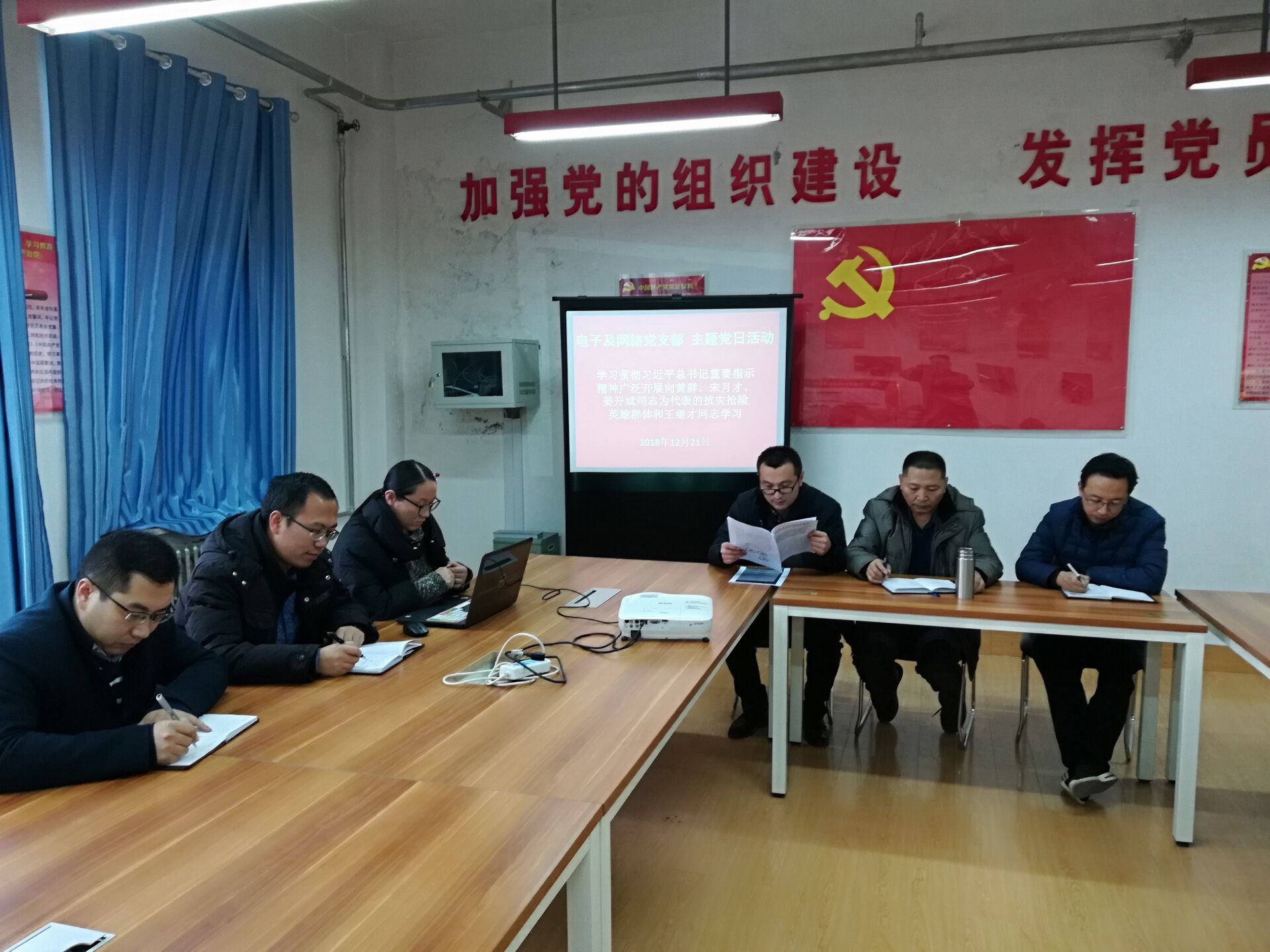 2018年12月21日,電子及網(wǎng)絡黨支部組織開展“不忘初心、牢記使命——學習全國、全省優(yōu)秀共產(chǎn)黨員先進事跡”主題黨日活動,電子及網(wǎng)絡黨支部全體黨員參加學習。