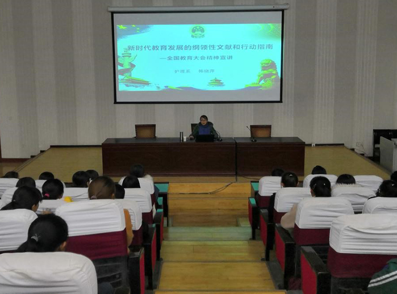 為深入做好全國(guó)教育大會(huì)精神宣講工作,根據(jù)學(xué)院安排12月24日護(hù)理系主任韓曉萍在正德廳為護(hù)理系200余人進(jìn)行全國(guó)教育大會(huì)精神宣講。