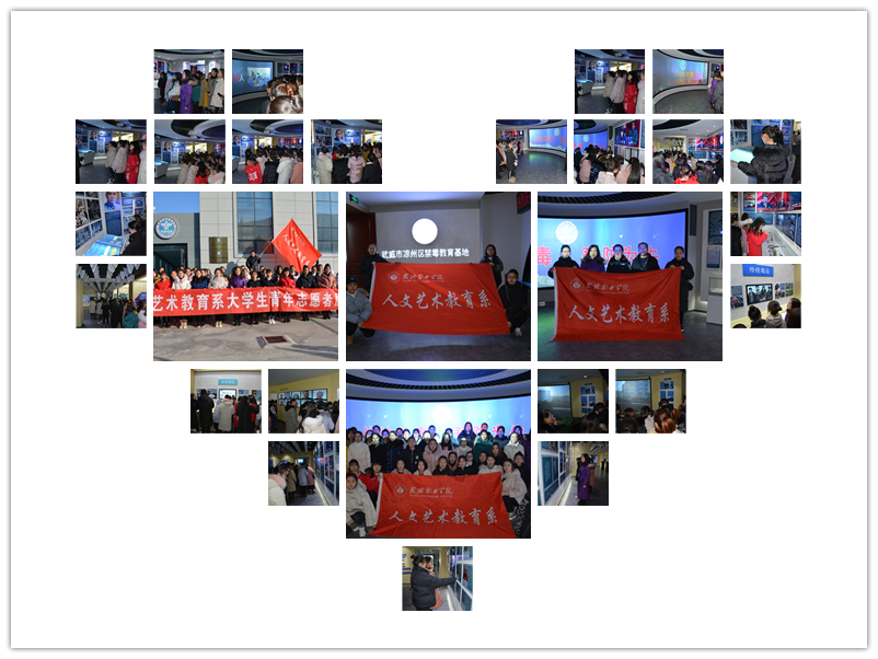 2018年12月7日下午,武威職業(yè)學(xué)院人文藝術(shù)教育系組織51名由老師、入黨積極分子、優(yōu)秀團學(xué)干部和入團積極分子組成的青年志愿者服務(wù)隊赴武威市涼州區(qū)禁毒教育基地參觀。展館運用現(xiàn)代展示手段和傳媒技術(shù),寓嚴(yán)肅的禁毒教育主題于生動的展示體驗之中,讓同學(xué)們充分認(rèn)識到毒品對個人、家庭、社會乃至國家、民族的危害。