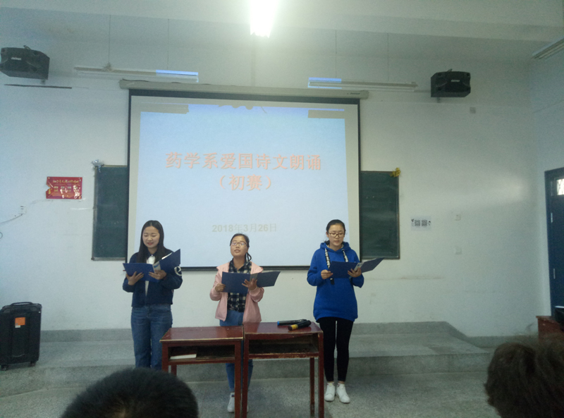 為深入學(xué)習(xí)貫徹習(xí)近平新時(shí)代中國(guó)特色社會(huì)主義思想和黨的十九大精神,鼓勵(lì)當(dāng)代大學(xué)生通過朗誦愛國(guó)詩(shī)文,感受中華經(jīng)典文化,塑造民族精神,展現(xiàn)新時(shí)期大學(xué)生精神風(fēng)貌,藥學(xué)系團(tuán)總支在系黨總支的安排和學(xué)院團(tuán)委的指導(dǎo)下,于3月26日在明遠(yuǎn)樓524教室舉辦了“我的中國(guó)夢(mèng)”經(jīng)典愛國(guó)詩(shī)文朗誦比賽。藥學(xué)系16級(jí)、17級(jí)各班學(xué)生代表參加了此次朗誦比賽。