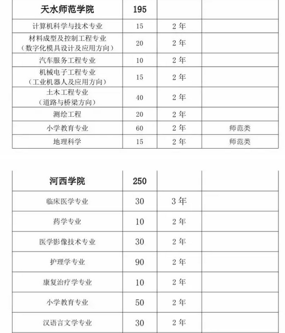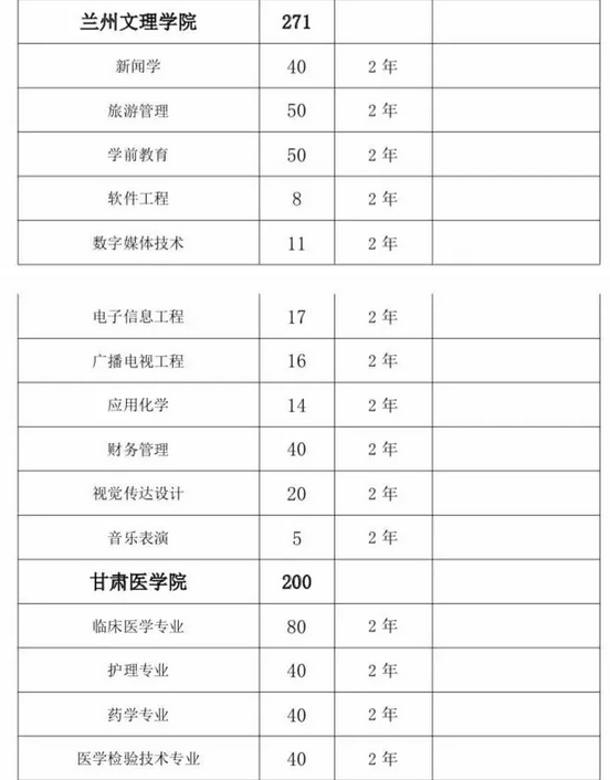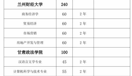 甘肅省2019年普通高?!皩I尽闭猩?jì)劃匯總表