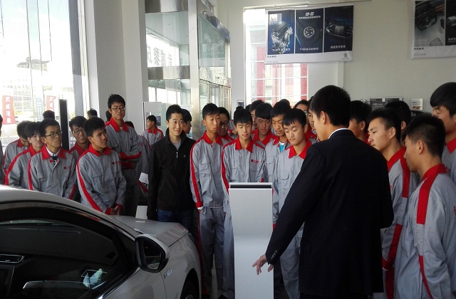 在參觀學習的過程中同學們積極性很高,認真聽取各4S店工作人員對汽車銷售、汽車售后等工作崗位的介紹,并就汽車銷售和維修中一些專業(yè)的問題進行了良好的互動。