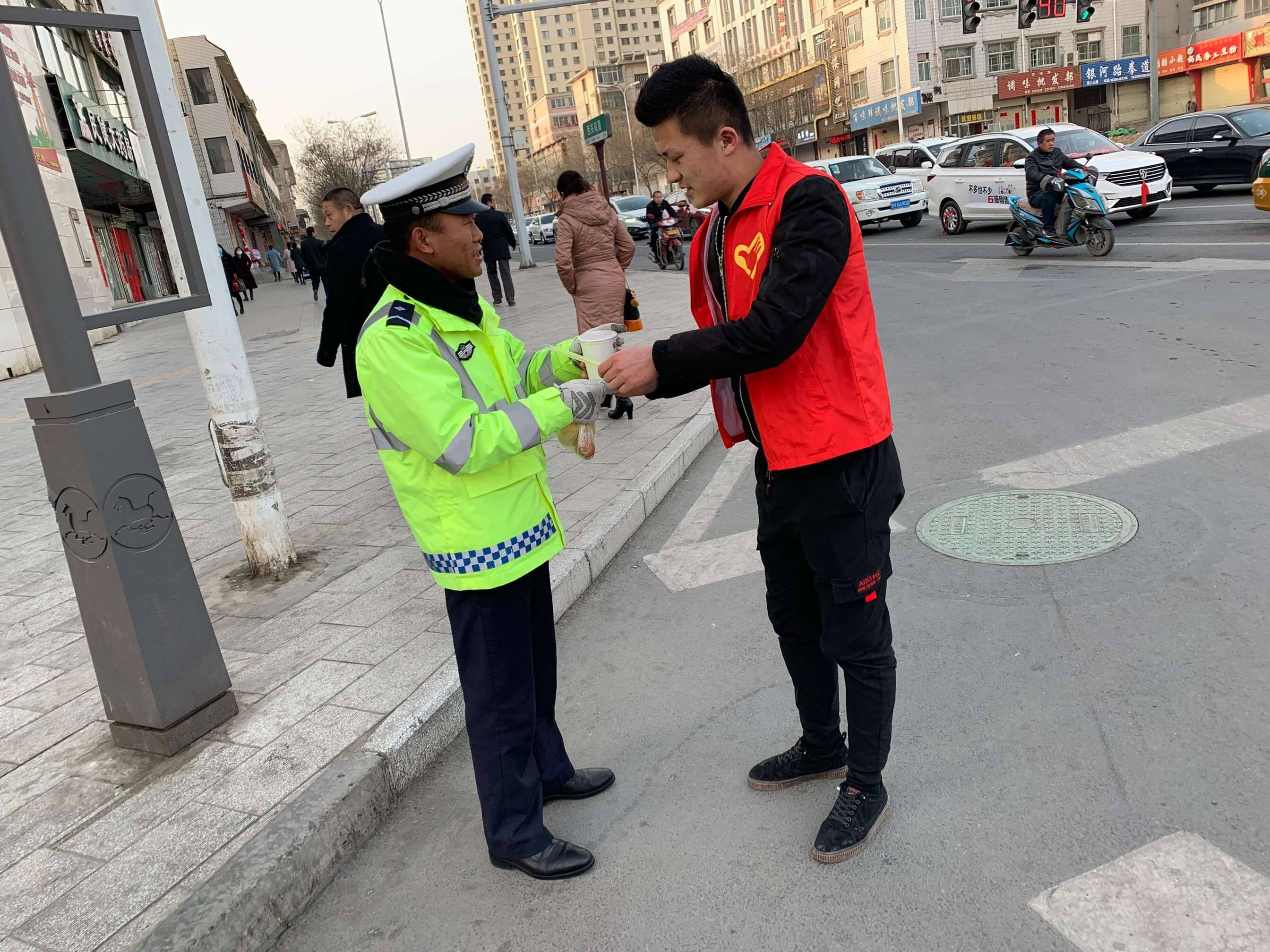 升旗儀式結(jié)束后,汽車系組織了“學(xué)雷鋒精神,送溫暖早餐”主題學(xué)生志愿者活動(dòng),為辛苦工作的環(huán)衛(wèi)工人及交警送上溫暖的早餐。詮釋了當(dāng)代大學(xué)生繼承和發(fā)揚(yáng)“雷鋒精神”重在行動(dòng),人人參與的積極景象。