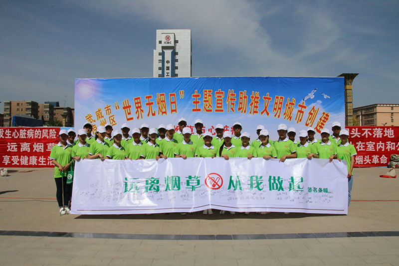 早上,學院 30多名控煙志愿者參加了武威市“世界無煙日”啟動儀式,通過發(fā)出倡議、橫幅簽名、撿拾煙頭等形式,積極開展“煙頭革命”,助推全國文明城市創(chuàng)建。