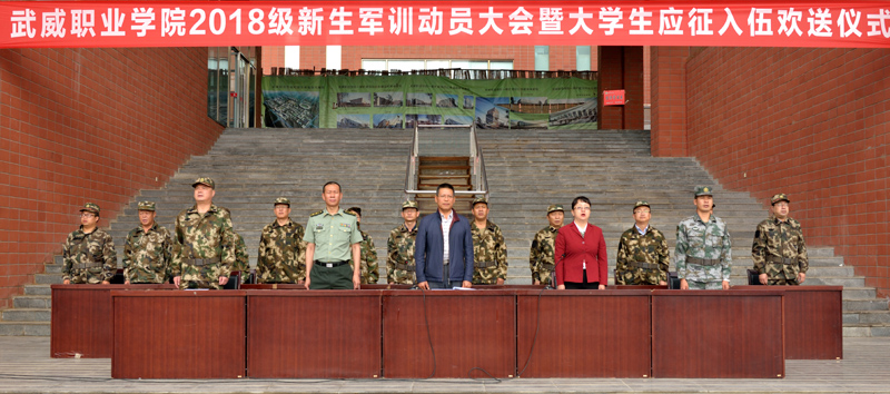 9月5日上午,武威職業(yè)學(xué)院2018級新生軍訓(xùn)動員大會暨大學(xué)生應(yīng)征入伍歡送儀式在大學(xué)生活動中心廣場舉行。學(xué)院副院長王永緒、田迎春,涼州區(qū)武裝部副部長韓小偉,工程防化第76旅副營長夏科銀出席儀式。承訓(xùn)單位工程防化第76旅45名戰(zhàn)士,學(xué)院學(xué)工處處長,各系黨總支書記、輔導(dǎo)員、班主任,2018級全體學(xué)生參加了大會。儀式由田迎春主持。