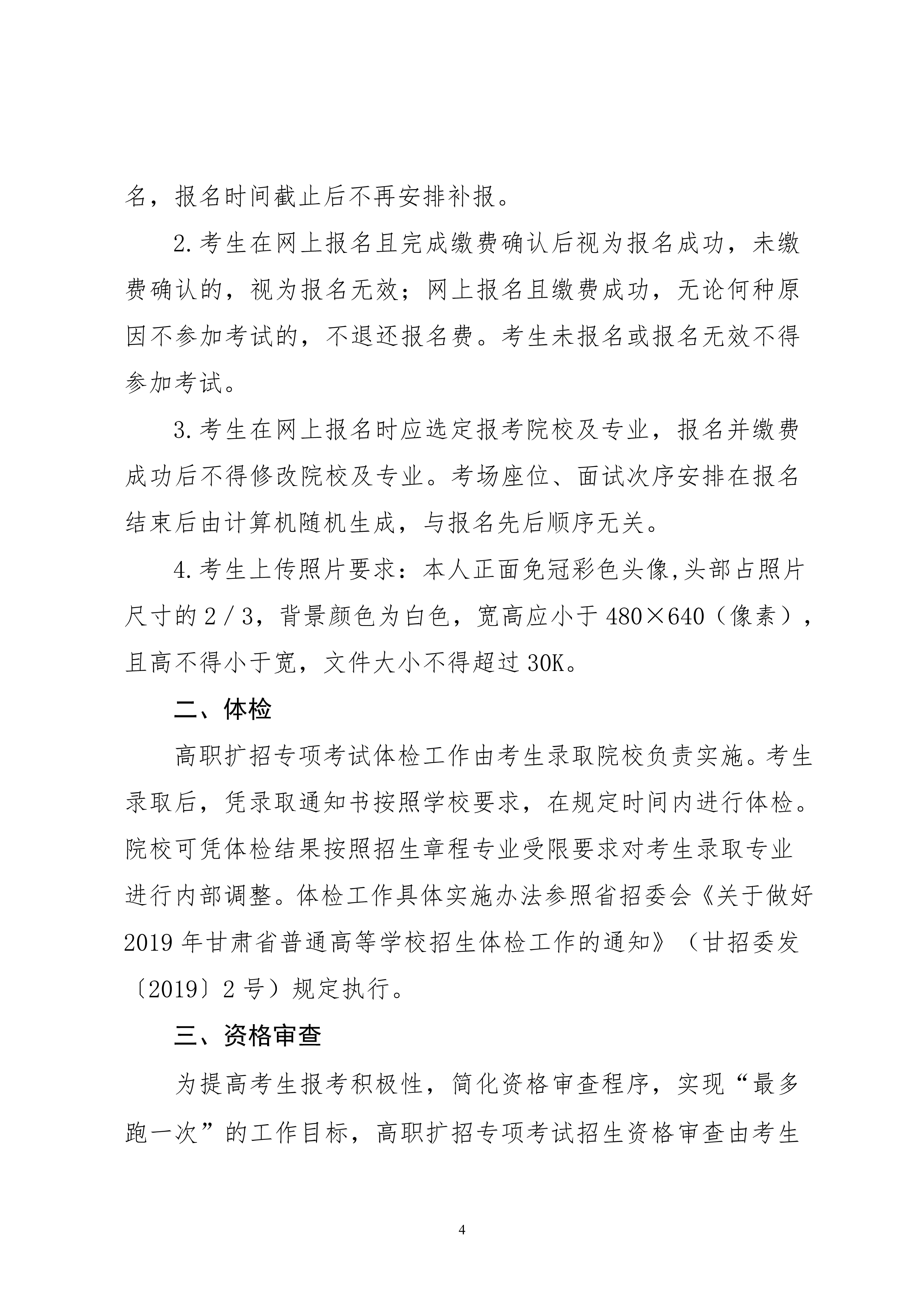 19年關(guān)于做好2019年甘肅省高等職業(yè)教育擴(kuò)招專項(xiàng)考試招生工作的通知