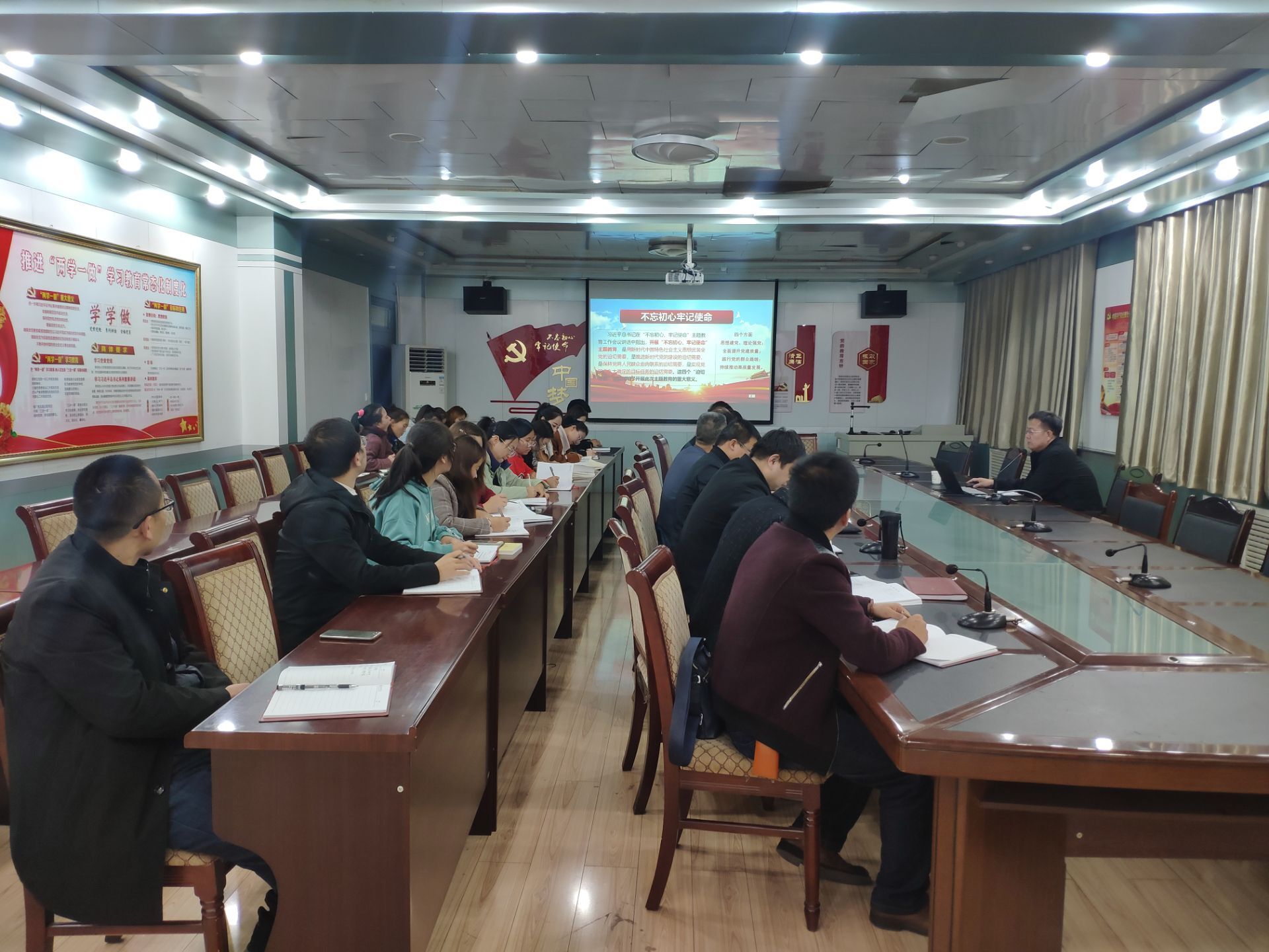 張開禮通過分析“不忘初心、牢記使命”主題教育的重大意義,指出“初心“、”使命”的豐富內涵,身為中國共產(chǎn)黨員要堅守馬克思主義信仰、堅持黨領導一切工作、堅持全心全意為人民服務。張開禮指出,全體黨員要堅持讀原著、學原文、悟原理,在學深悟透習近平新時代中國特色社會主義思想上下功夫;以 “三會一課”、主題黨日等為重點,全面加強理論學習,結合主題教育重點解決好理想信念、責任擔當和執(zhí)行落實等問題上踐行初心和使命。