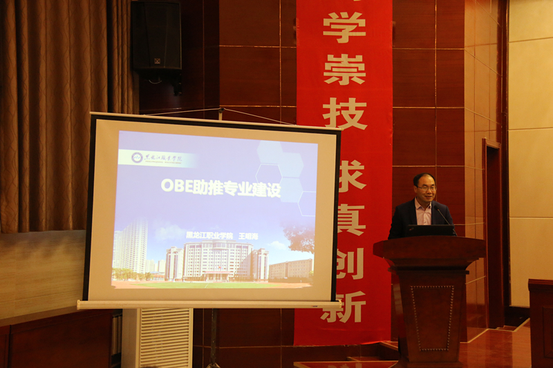 王明海教授以“成果導向教育(OBE)助推專業(yè)建設”為題作了專題報告。他結合自身多年的實踐經(jīng)驗和研究成果向與會者回顧了黑龍江職業(yè)學院成果導向課程開發(fā)歷程,從定義成果、設計課程到教學授課、評定結果、決定進階五個方面系統(tǒng)闡述了成果導向課程開發(fā)與實施路徑,為參會高職院校教學改革提供了參考方向。