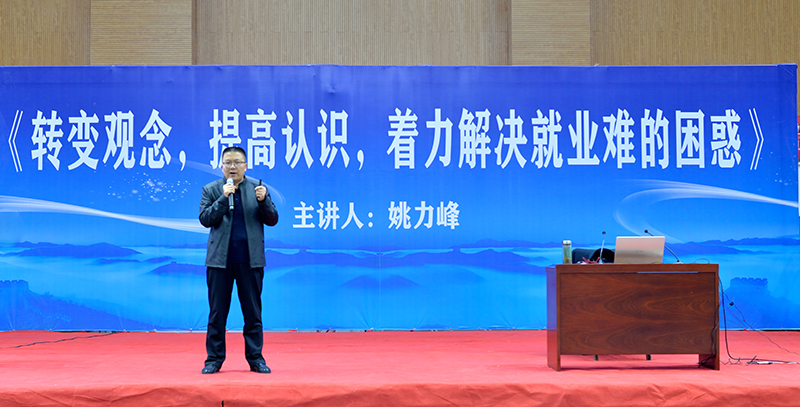 為貫徹2020屆全國普通高校畢業(yè)生就業(yè)創(chuàng)業(yè)工作網(wǎng)絡(luò)視頻會(huì)議精神,學(xué)院以習(xí)近平新時(shí)代中國特色社會(huì)主義思想為指導(dǎo),深入落實(shí)黨中央、國務(wù)院關(guān)于促進(jìn)高校畢業(yè)生就業(yè)創(chuàng)業(yè)的一系列重大決策部署,把畢業(yè)生就業(yè)工作擺在最突出位置,確保畢業(yè)生就業(yè)大局穩(wěn)定。12月14日上午,學(xué)院組織2020屆畢業(yè)生,在體育館參加了題為《轉(zhuǎn)變觀念,提高認(rèn)識(shí),著力解決就業(yè)難得困惑》的專家講座,引導(dǎo)畢業(yè)生轉(zhuǎn)變觀念、積極就業(yè)。講座由省人社廳人力資源市場檔案管理部部長姚力峰主講,招生就業(yè)處副處長董鵬主持。