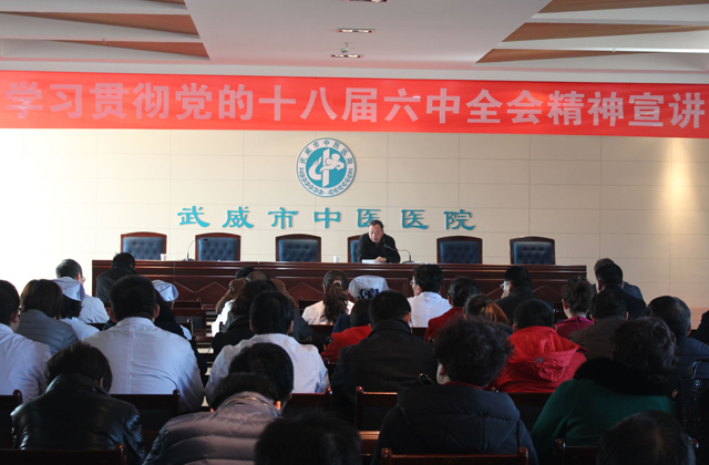 在全市上下深入學(xué)習(xí)宣傳貫徹黨的十八屆六中全會精神之際,12月15日下午,直屬附屬醫(yī)院邀請武威市委講師團張生龍同志為全院黨員和中層干部作黨的十八屆六中全會精神宣講報告。
