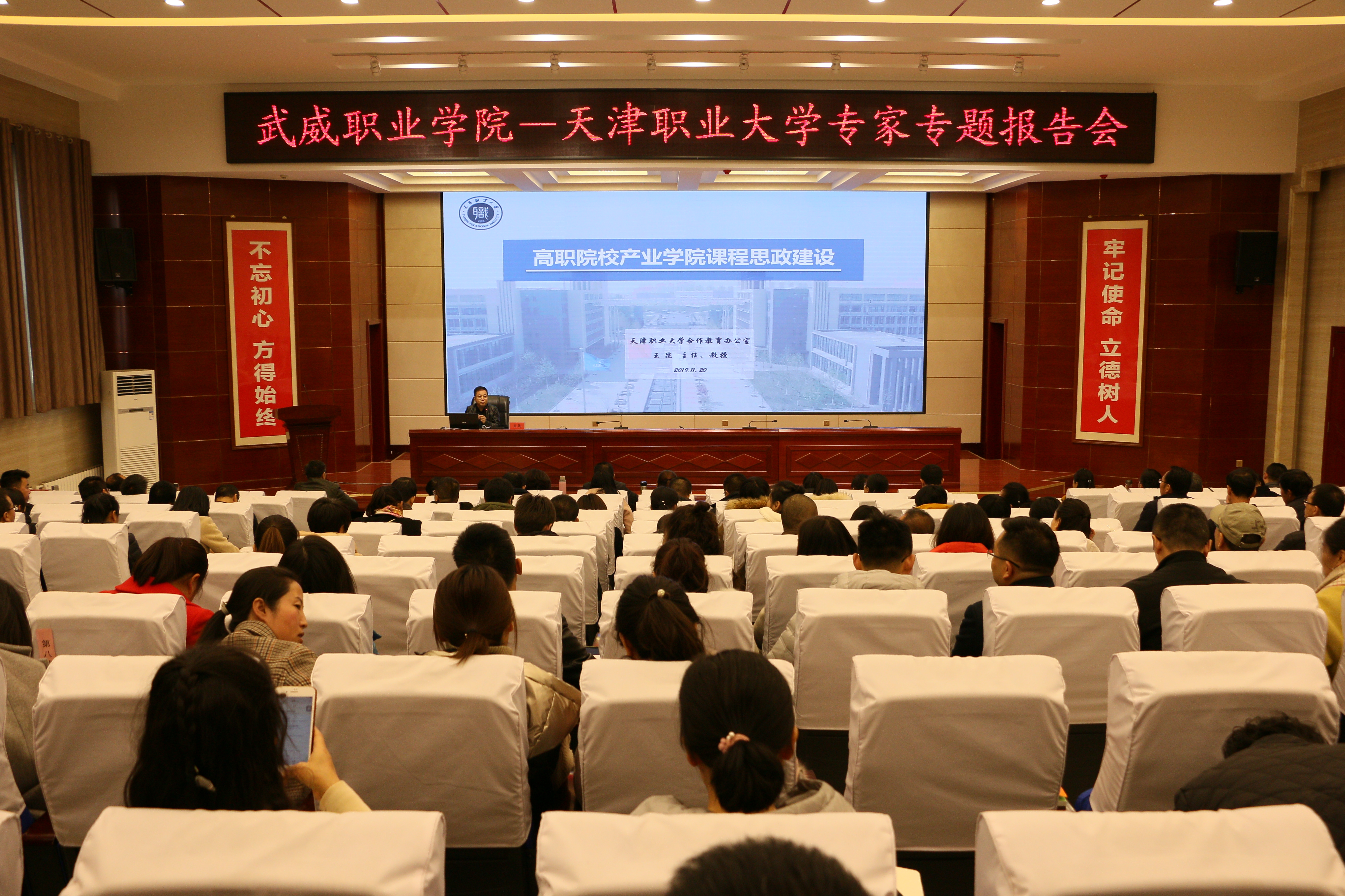 11月20日,武威職業(yè)學院“綠洲講壇”第29期在學院菁英廳舉行,本期活動邀請到天津職業(yè)大學合作教育辦公室主任王昆教授作主題為“高職院校產(chǎn)業(yè)學院課程思政建設(shè)”的報告。學院領(lǐng)導班子、中層干部、教師代表220余人參加了報告會。本期講壇由學院黨委書記、院長趙明主持。