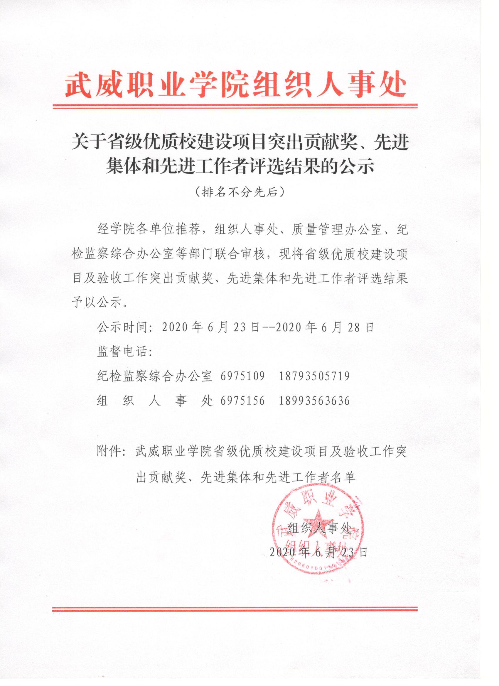 關(guān)于省級優(yōu)質(zhì)校建設項目突出貢獻獎、先進集體和先進工作者評選結(jié)果的公示