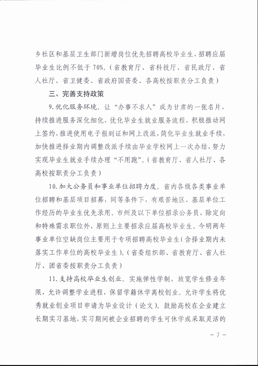 甘肅省教育廳等七部門關(guān)于印發(fā)《甘肅省促進(jìn)高校畢業(yè)生就業(yè)創(chuàng)業(yè)若干措施》的通知
