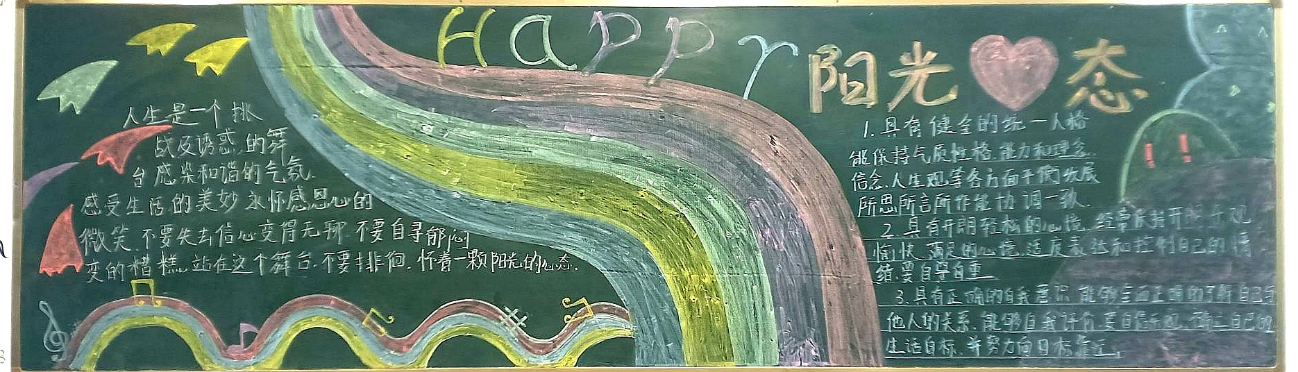 為進一步提高大學生的心理素質(zhì),促進大學生的身心健康和諧,宣傳普及心理健康知識,深入開展心理健康教育,我系結(jié)合學院特點,突出專業(yè)優(yōu)勢,在積極承擔和參與學校心理健康活動月的團日活動的同時,各班開展了豐富多彩的以“心理健康”為主題的黑板報。