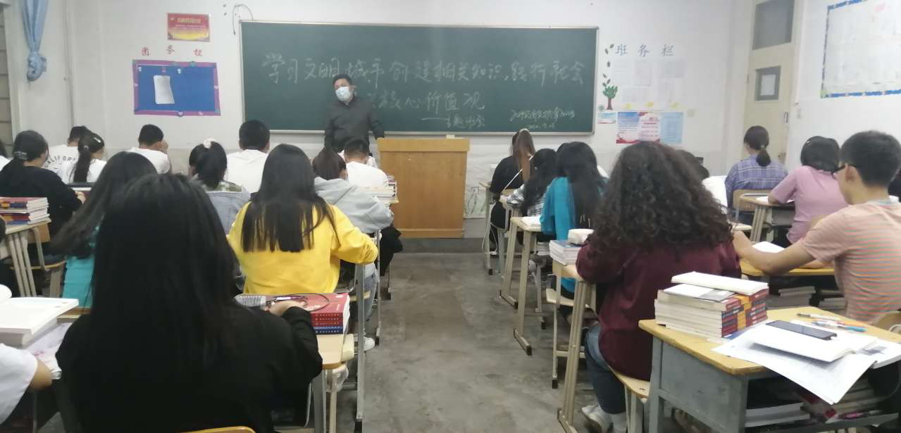 ?為深入學(xué)習(xí)習(xí)近平新時(shí)代中國(guó)特色社會(huì)主義思想和黨的十九大、十九屆四中全會(huì)精神,堅(jiān)決落實(shí)學(xué)院關(guān)于文明校園和文明城市創(chuàng)建的各項(xiàng)安排部署,深入推進(jìn)制止餐飲浪費(fèi)行為系列活動(dòng),團(tuán)結(jié)引領(lǐng)我系師生積極踐行社會(huì)主義核心價(jià)值觀,樹立文明和諧新風(fēng)尚。醫(yī)學(xué)技術(shù)與信息管理系各教學(xué)班于2020年9月15日開展了“樹立文明新風(fēng)尚,踐行社會(huì)主義核心價(jià)值觀”主題班會(huì)教育活動(dòng)。