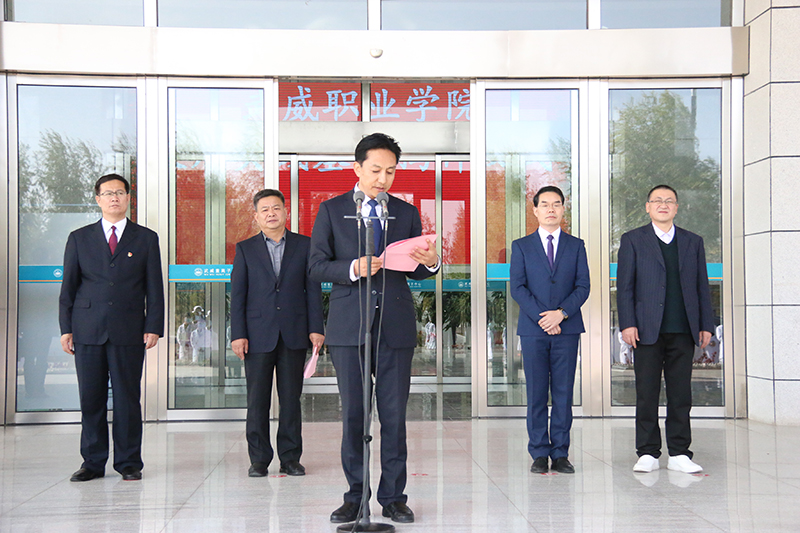 揭牌儀式上,趙明介紹學(xué)院教育教學(xué)改革發(fā)展所取得的成效,強(qiáng)調(diào)職業(yè)教育和普通教育是兩種不同的教育類型,具有同等重要地位,全面落實(shí)《國(guó)家職業(yè)教育改革實(shí)施方案》和“技能甘肅”部署要求,推動(dòng)學(xué)院“雙高”建設(shè),爭(zhēng)創(chuàng)高職應(yīng)用型本科院校,離不開(kāi)高水平的合作醫(yī)院,離不開(kāi)高水平的師資隊(duì)伍。教師實(shí)踐基地的揭牌成立,將會(huì)進(jìn)一步加強(qiáng)雙方的合作交流,實(shí)現(xiàn)資源共享、優(yōu)勢(shì)互補(bǔ)、共同發(fā)展,我們要積極探索和創(chuàng)新基地育人方式,使之成為“雙師型”教師培養(yǎng)的搖籃。