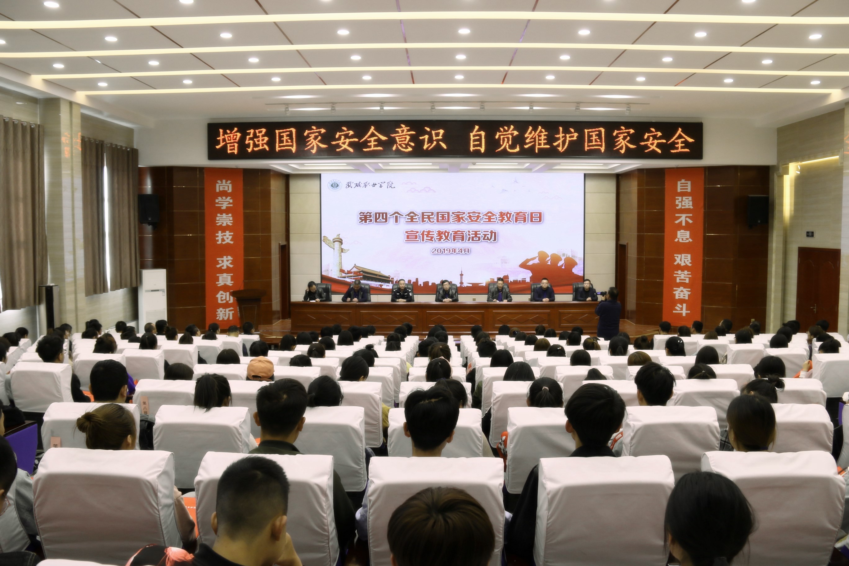 4月15日下午,學(xué)院聯(lián)合武威市國家安全局、涼州區(qū)公安局西關(guān)街派出所在學(xué)院大學(xué)生活動(dòng)中心組織開展了第四個(gè)全民國家安全教育日宣傳活動(dòng),武威市國家安全局副局長李宏、學(xué)院副院長王永緒、涼州區(qū)公安局西關(guān)派出所副所長杜文義,學(xué)院保衛(wèi)處、宣傳統(tǒng)戰(zhàn)部、學(xué)生工作處、院團(tuán)委等部門負(fù)責(zé)人及各系師生代表500多人參加宣傳活動(dòng)。