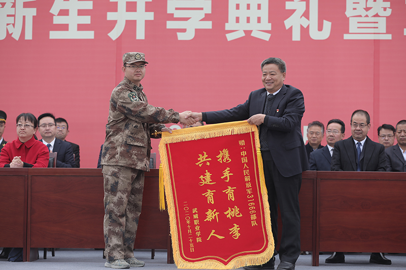 黨委書記、院長趙明向承訓(xùn)部隊(duì)贈送錦旗