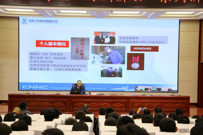 報(bào)告會上,胡建民大師首先向師生介紹了蘭鈾公司的光輝歷程、歷史貢獻(xiàn)、公司概況,然后圍繞個(gè)人成長經(jīng)歷、學(xué)習(xí)交流工作培訓(xùn)、工作室工作方向三個(gè)方面深入淺出地講述了自己的工匠之路,為同學(xué)們在專業(yè)技能、就業(yè)指導(dǎo)、職業(yè)素養(yǎng)等方面分享了自己的生活、工作經(jīng)驗(yàn),師生們獲益良多。