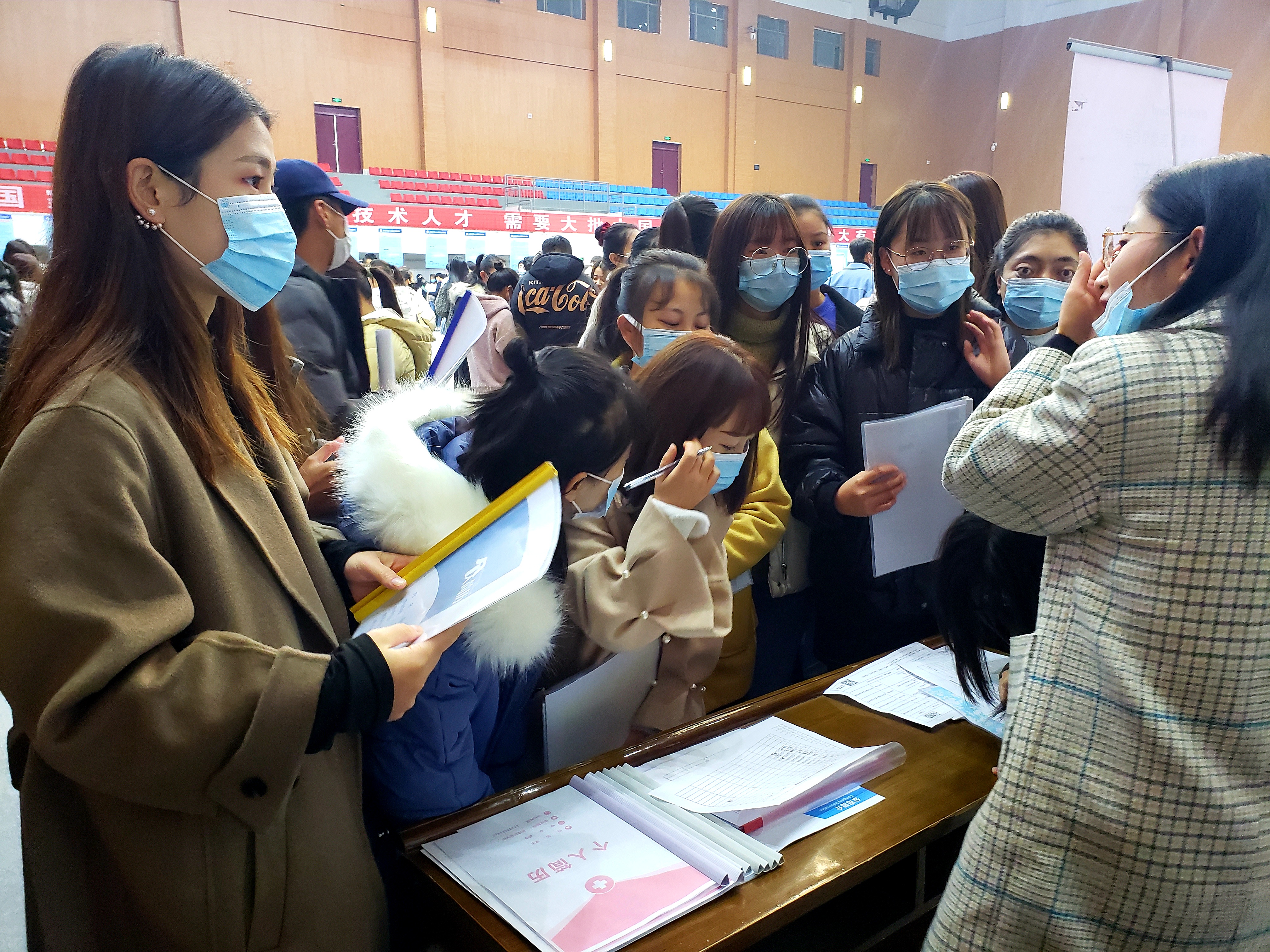 本次招聘會吸引了150多家企業(yè)報名參會,從中挑選110余家專業(yè)契合度高、發(fā)展?jié)摿姟⑸鐣抛u好、福利待遇優(yōu)的企業(yè)參加招聘。招聘單位涵蓋了機械機電、能源化工、信息工程、農業(yè)技術、建筑制造、醫(yī)藥衛(wèi)生、教育培訓等50多個崗位類別,為畢業(yè)生提供崗位3340多個。招聘會現(xiàn)場人頭攢動,招聘單位積極宣介,同學們手持簡歷從容自信地展示自己扎實的專業(yè)知識以及良好的精神風貌,贏得了招聘單位的贊賞。學院2021屆畢業(yè)生共有3803名,經初步統(tǒng)計,此次招聘會共達成就業(yè)意向2500多名,有1800人在招聘會現(xiàn)場簽訂了就業(yè)三方協(xié)議。此次招聘會按照新冠肺炎疫情常態(tài)化防控要求,逐一核驗來校招聘人員健康綠碼,嚴格落實體溫檢測、消毒防疫等疫情防控措施。