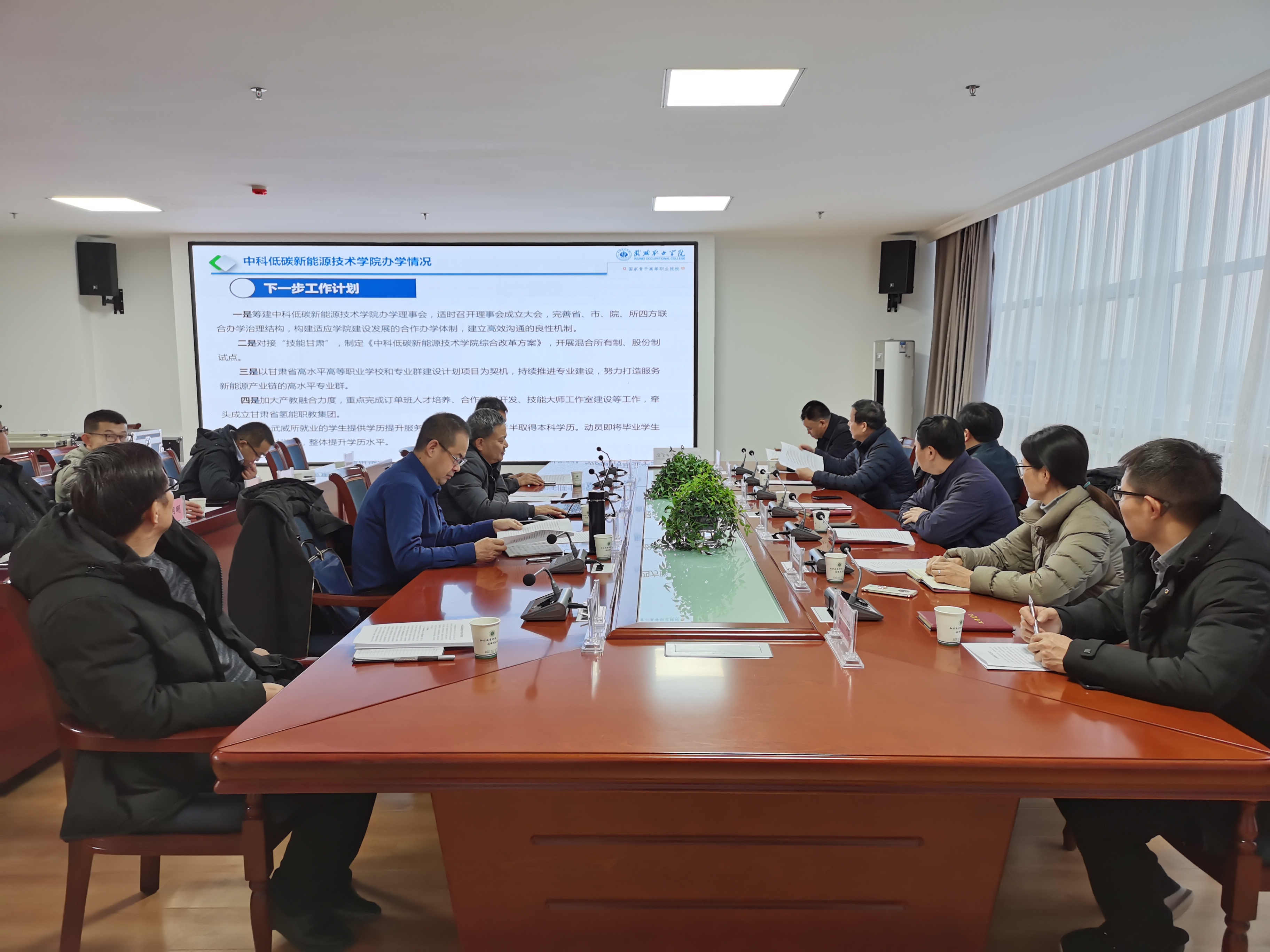 戴志敏指出通過參觀考察全面深入了解到武威職業(yè)學(xué)院雄厚的辦學(xué)實力和較高辦學(xué)水平,對聯(lián)合辦學(xué)以來中科低碳新能源技術(shù)學(xué)院取得的成就表示充分肯定和認可,非常贊同學(xué)院提出的中科低碳新能源技術(shù)學(xué)院下一步發(fā)展規(guī)劃,表示所里將在合作辦學(xué)理事會籌建、實驗實訓(xùn)基地建設(shè)、校內(nèi)實驗室建設(shè)、教材開發(fā)編寫、新能源科技館建設(shè)、科研項目申報研究、師資培訓(xùn)、學(xué)生頂崗實習(xí)和就業(yè)、“雙高”院校創(chuàng)建等方面給予全力支持,促進中科低碳新能源技術(shù)學(xué)院合作辦學(xué)更深、更實、更好發(fā)展。