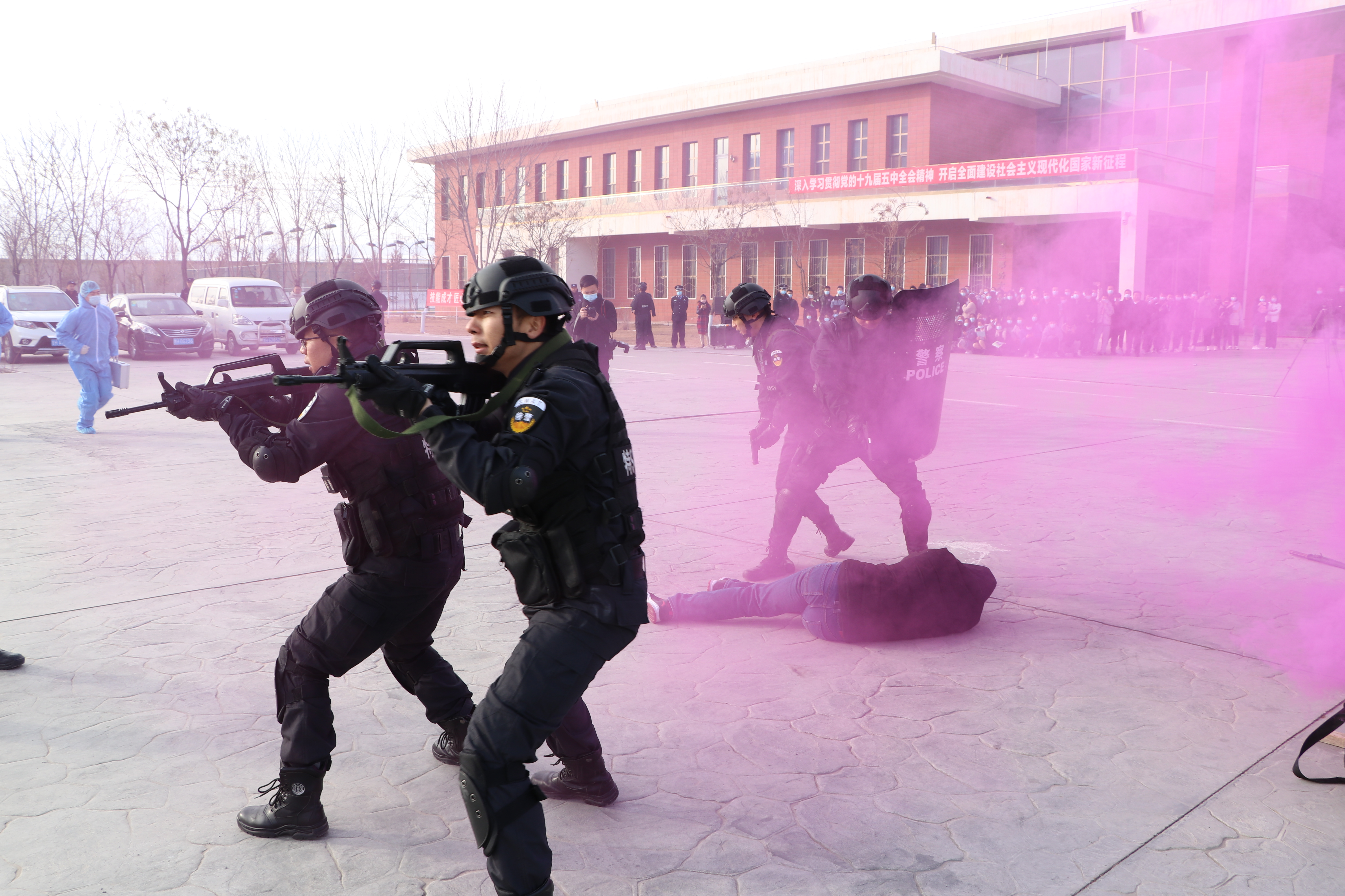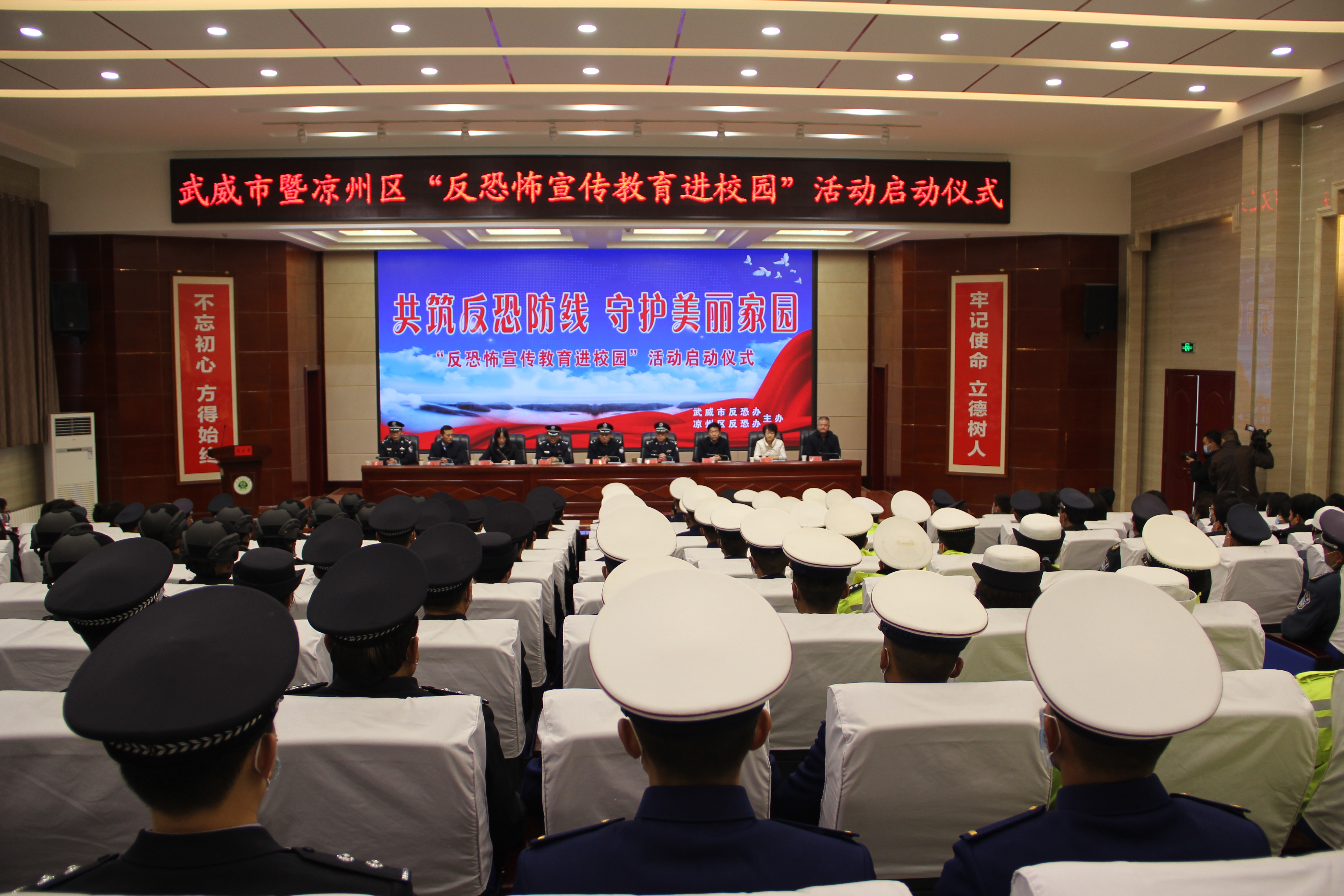 武威市反恐怖辦主任、市公安局常務(wù)副局長康威,市委宣傳部四級調(diào)研員韋國富、市教育局副局長賈玉玲、市應(yīng)急管理局副局長范鵬飛、市衛(wèi)健委副主任張芳、武威職業(yè)學(xué)院副院長王守云、市公安局副局長、涼州區(qū)反恐怖工作領(lǐng)導(dǎo)小組副組長、涼州區(qū)公安局局長劉武德出席了本次活動(dòng)。涼州區(qū)相關(guān)單位反恐工作負(fù)責(zé)同志及市、區(qū)公安機(jī)關(guān)相關(guān)警種、消防救援支隊(duì)隊(duì)員、武威市人民醫(yī)院醫(yī)務(wù)人員及學(xué)院師生300余人參加啟動(dòng)儀式。