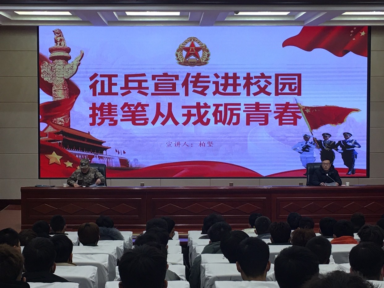 柏堅就征兵工作中的征兵對象、征集辦法、體檢標準、優(yōu)惠政策等做了詳細介紹,并結(jié)合自身經(jīng)歷講述了真實的軍旅生活和當兵帶來的變化,引導(dǎo)大學生從增強體魄、鍛煉意志、加強組織紀律性和提高執(zhí)行力等方面全面認識應(yīng)征入伍的重大意義,教育大家把個人理想抱負融入強軍夢、中國夢,投身祖國建設(shè)國防建設(shè)事業(yè),號召廣大青年學生積極響應(yīng)國家政策,勵志參軍,報國建功。