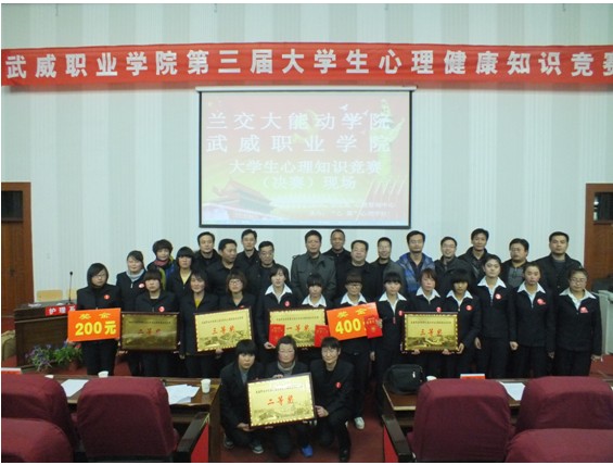 此次比賽歷時(shí)一個(gè)月,分為初賽和決賽兩部分。全院13個(gè)系和蘭交大能動(dòng)學(xué)院代表隊(duì)參加了初賽的角逐,最終蘭交大能動(dòng)學(xué)院、電子信息工程系、護(hù)理系、藥學(xué)系、外語系、農(nóng)經(jīng)系六支代表隊(duì)進(jìn)入決賽。競(jìng)賽分必答題、搶答題、風(fēng)險(xiǎn)題、觀眾互動(dòng)四個(gè)環(huán)節(jié),內(nèi)容涉及心理理論知識(shí)、心理保健常識(shí)、心理科普知識(shí)等,融趣味性、教育性、普及性于一體。在比賽開始之前,各參賽隊(duì)一一向大家作了別出心裁的介紹,并喊出自己隊(duì)的參賽口號(hào)。比賽中,臺(tái)上選手們“八仙過海,各顯其能”,展現(xiàn)了他們雄厚的實(shí)力,隊(duì)員踴躍發(fā)言,積極搶答,臺(tái)下親友團(tuán)搖旗吶喊,為選手加油,高潮迭起。現(xiàn)場(chǎng)始終洋溢著緊張、熱烈、和諧的氣氛。最終,護(hù)理系代表隊(duì)以他們精彩出色的表現(xiàn)奪得一等獎(jiǎng),能動(dòng)學(xué)院代表隊(duì)、外語系代表隊(duì)獲得二等獎(jiǎng),藥學(xué)系、電信系、農(nóng)經(jīng)系代表隊(duì)獲得三等獎(jiǎng)。