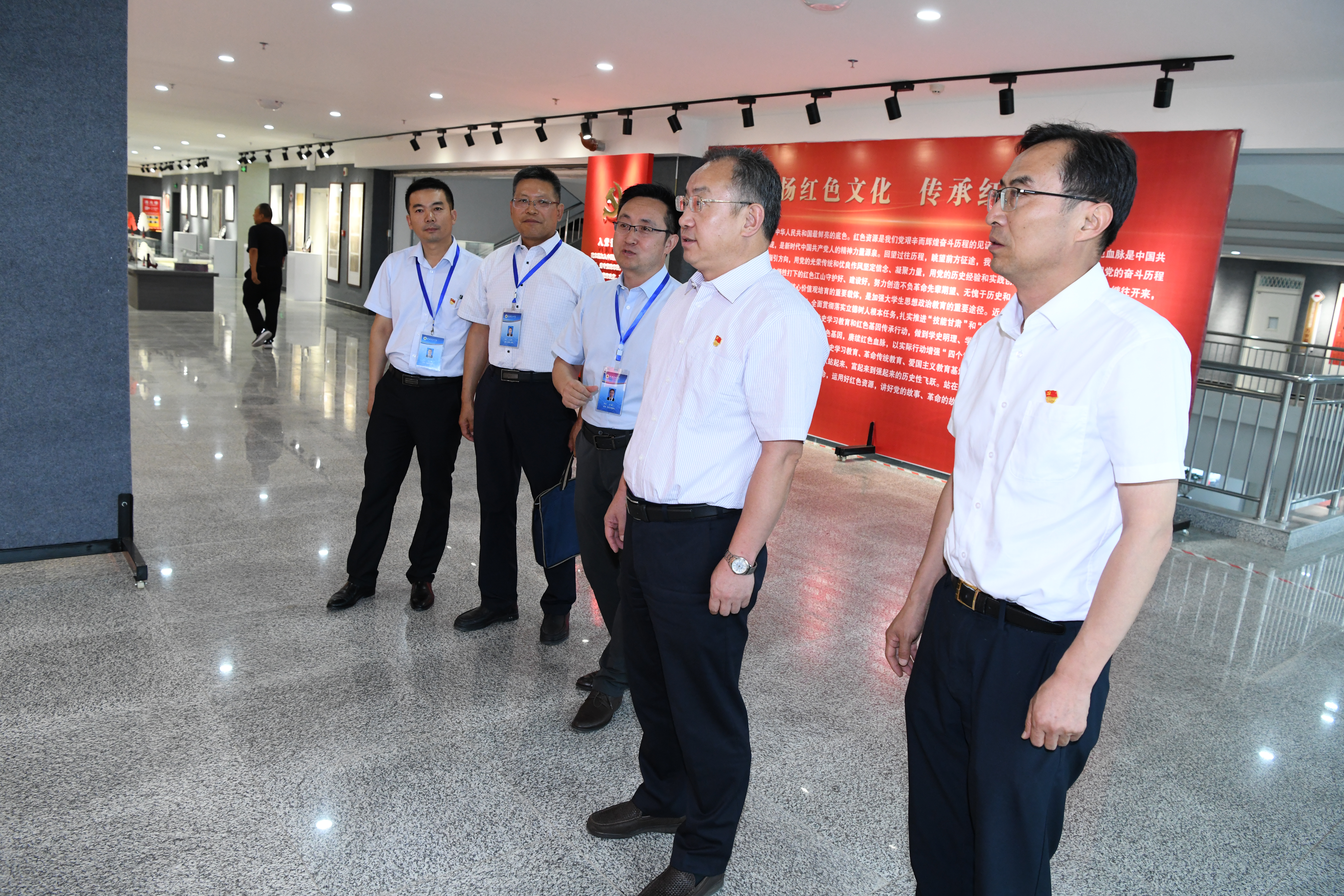 ?會(huì)后,張新平一行在學(xué)院領(lǐng)導(dǎo)的陪同下參觀了學(xué)院紅色文化藝術(shù)館,組織人事處處長(zhǎng)任陶同志做講解。