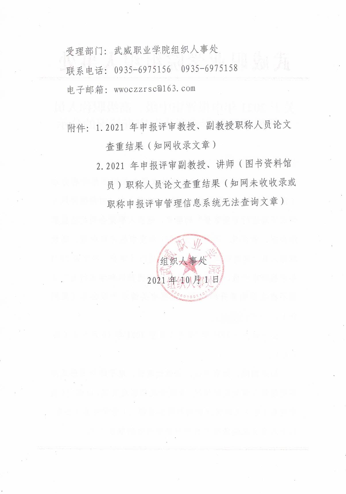 2021年申報評審教授、副教授、中級職稱人員論文查重結果