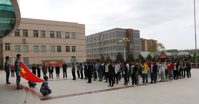 2016年5月5日下午5時,伴隨嘹亮的中華人民共和國國歌聲的響起,面對鮮艷的中華人民共和國國旗,武威職業(yè)學院基干民兵連整組點驗儀式在學院尚德樓北廣場隆重舉行。